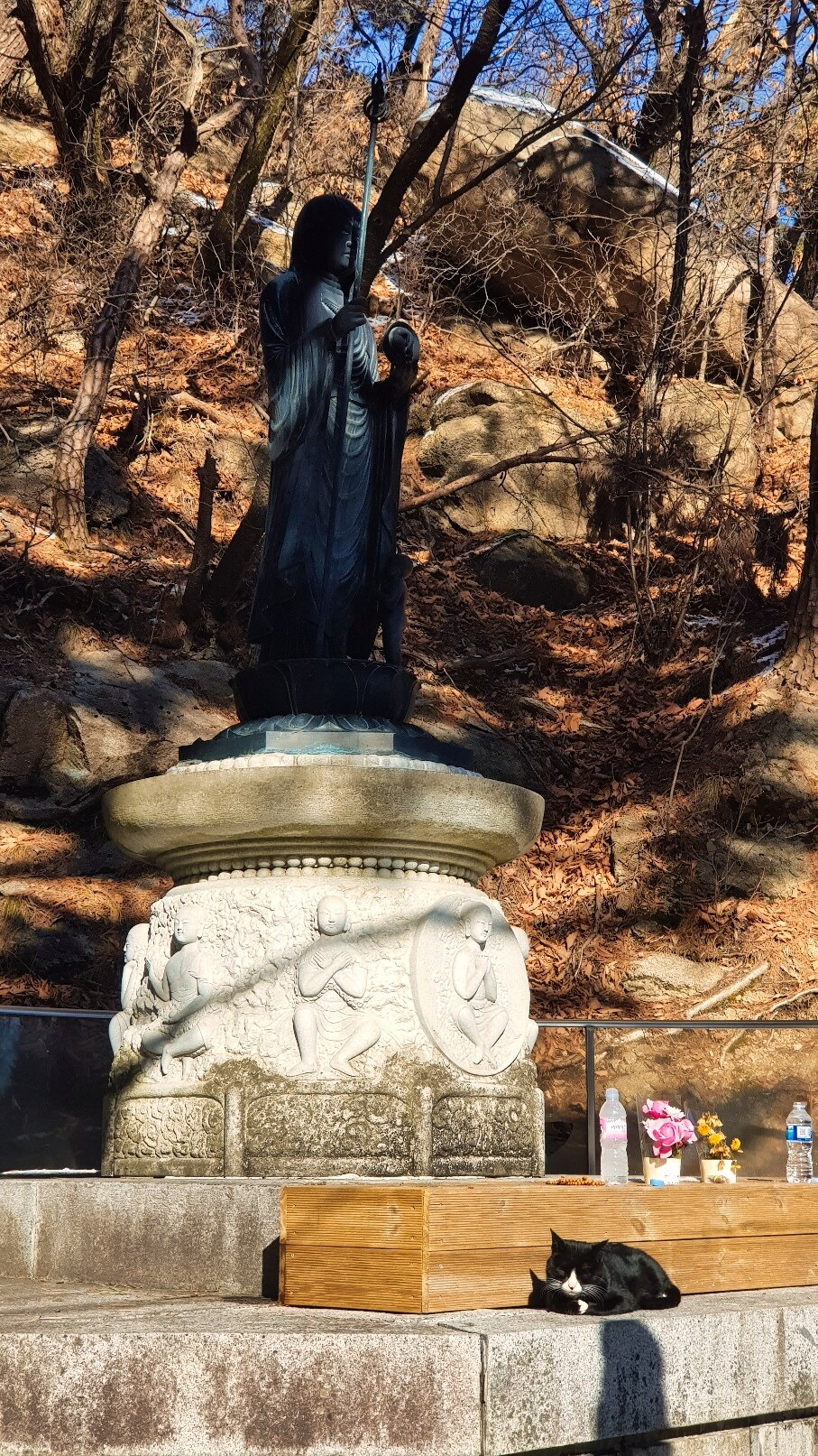 아, 원래 쓰려했던 건 이게 아니었는데, 쓸데없이 길어졌습니다. 단지, 도선사 검은 지장보살상에서 우연히 만난 검정고양이를 가볍게 이야기해 보려 했습니다. 그래서, 제목도 ‘검정 지장보살 네로’라 지었지요. 그저, 지장보살과 깜장 깔맞춤에 참선하듯 앉아있는 고양이가 참 예뻤다는 얘기를 사진자랑과 함께 하고팠는데, 새벽에 쓰면 이게 참 문제입니다.
