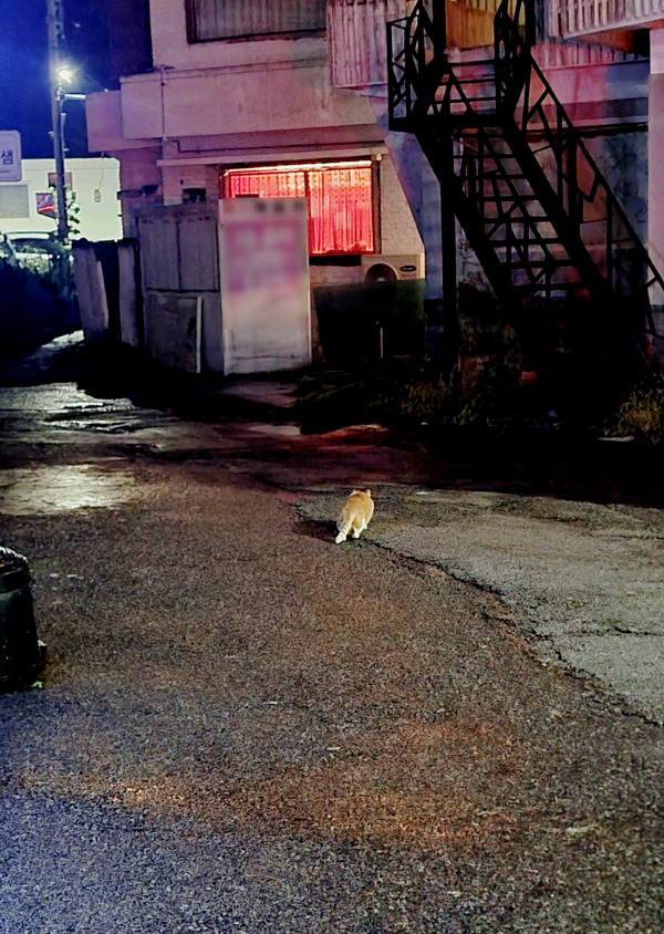 길 한가운데 고양이 한 마리가 서있었다.