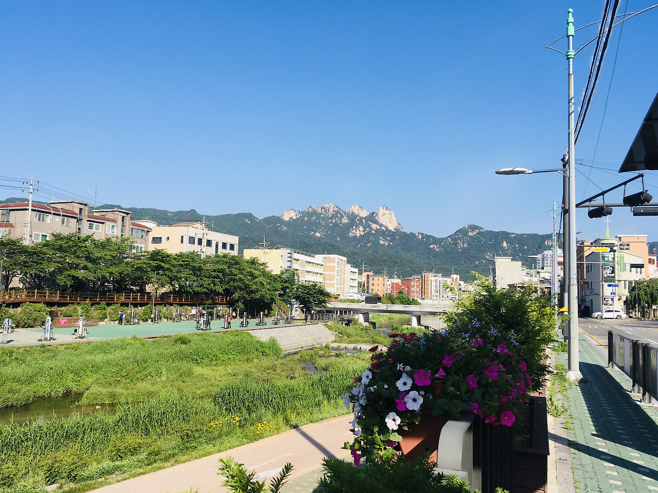 가운데 백운대가 제일 높고, 등산코스로 인기가 많다.