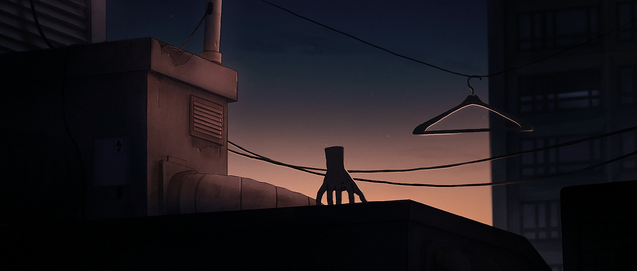 손을 잃은 '몸'은 검은 허공으로 뛰어 내린다.