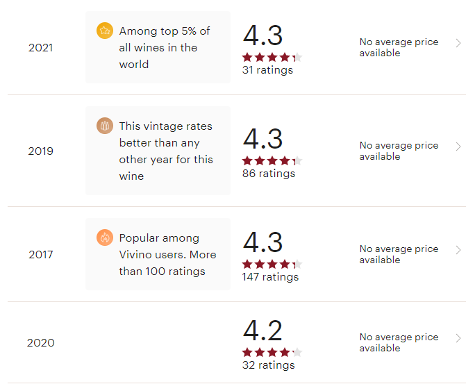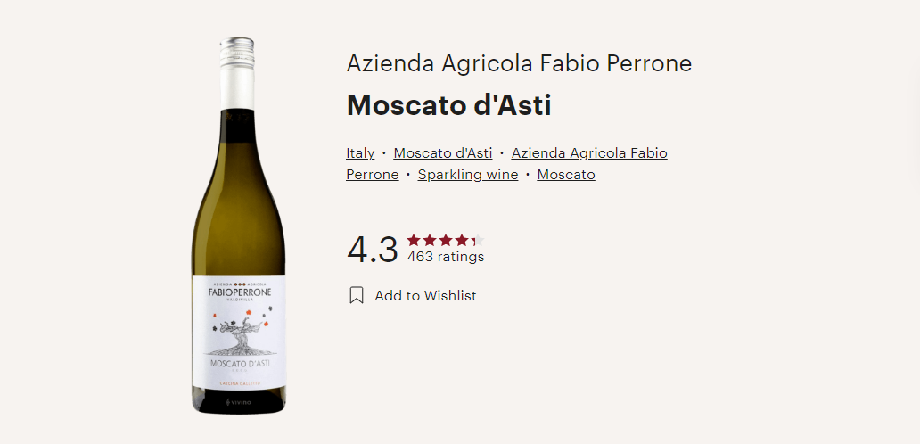 모스카토 다스티 중 가장 높은 비비노VIVINO 평점을 획득