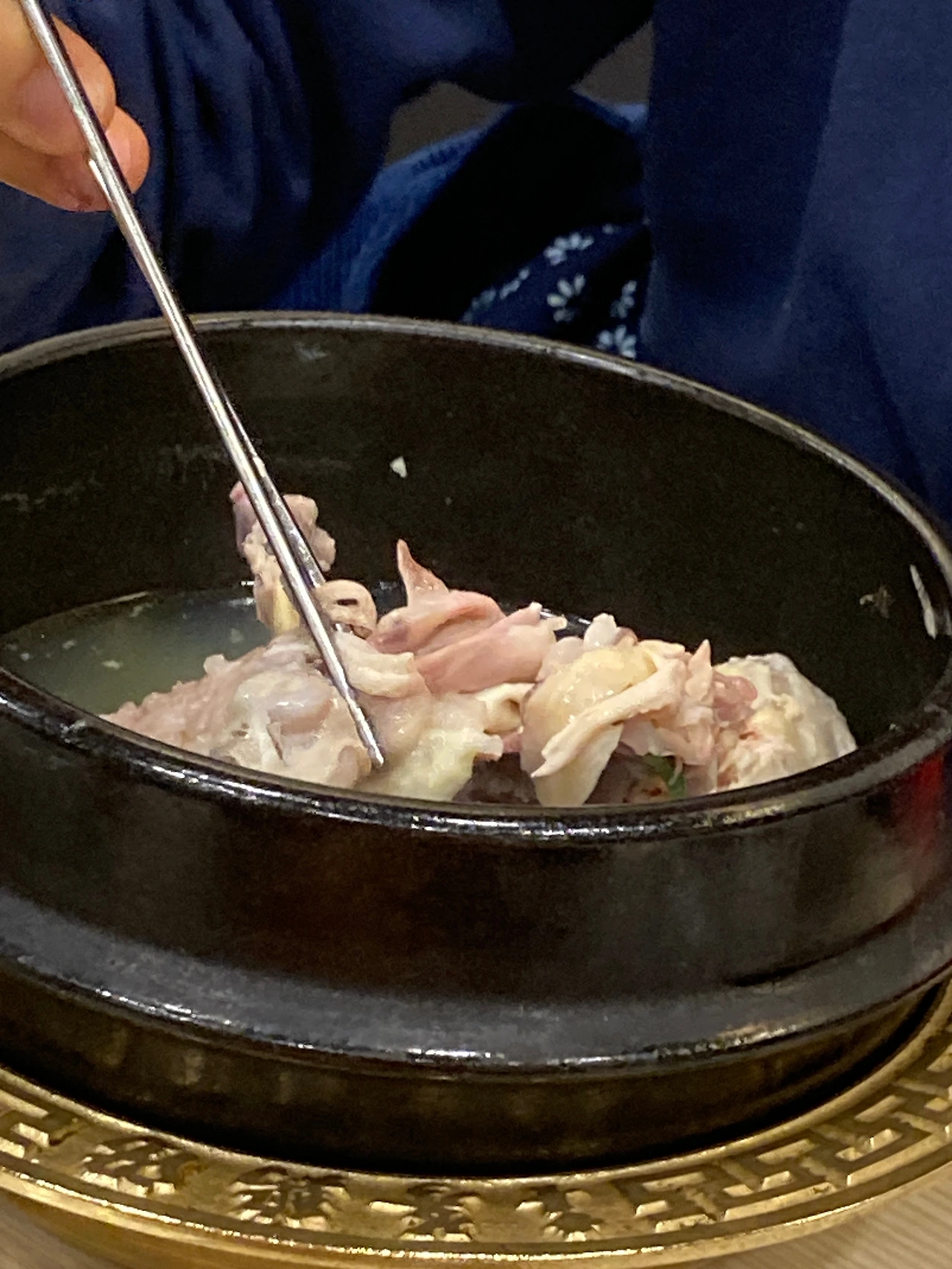 김이 모락모락 피어오르는 삼계탕 호호 입김을 내불고 한입 입에 넣으면 육즙이 쫘악 퍼지면서 쫄깃똘깃한 고기가 씹힌다. 뜨거우면 시원한 탄산맛 나는 무를 씹으면 된다. 맛있는 삼계탕. ㅎㅎ