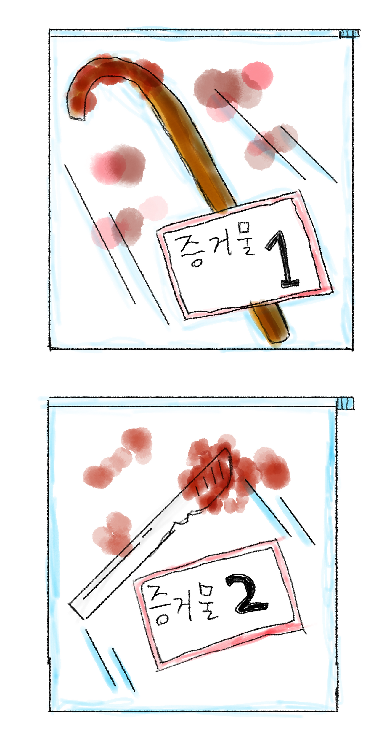 그들은 곧바로 부검실로 향했다. 부검실에 도착하자 한 침대가 보였다. 사람이 누워있었고, 그 위가 흰 천으로 덮혀져 있었다. 이미 사망한 것이었다. 시체는 꽤 오랜 시간이 지났는데도 비릿한 피 냄새가 희미하게 감돌았다. 핸리 서장이 장갑을 낀 손으로 살며시 천을 걷어 내렸다. 시체의 얼굴은 고통스러움을 느낀듯한 듯이 잔뜩 일그러져 있었다. 시체는 겉보기에는 큰 타격을 입은 흔적이 없는 것 같았다. 하지만 자세히 보니 옆구리에 날카로운 무언가로 찔린 듯한 깊은 상처가 있었다. “히익…. 첫날부터 살인사건이라니….. 무섭다…” 마리가 잔뜩 겁을 먹은 채로 말했다. 핸리 서장이 말했다. “시체의 바지 주머니 안에 들어있는 신분증으로 정보를 알아냈습니다. 이름은 릭키 노르만, 성별은 남자이고 23세입니다. 그리고…. “ ”그리고요? “ 루이나가 날카롭게 눈을 빛내며 물었다. “부검 결과 선천적인 다리 부종이 있다는 것을 알아냈습니다. “ ”다, 다리 부종이요?! 증, 증거가 있나요? “ 있습니다. 이것입니다. “ 핸리 서장이 증거물이 담긴 봉지를 내밀었다. 붉은 피가 묻은 다갈색 지팡이가 안에 들어 있었다. ”시체는 어디서 발견되었나요? “ ”탐정님이 오시기 30분 전에 루이스 강변에서 발견되었습니다. 길을 가던 한 남자가 시체를 보고 바로 사진을 찍어 저희 경찰서에 보고했습니다. 그리고 증거가 또 있습니다. “ ”뭐죠? “ ”피 묻은 메스입니다. 하지만 묻은 혈액은 노르만 씨의 피이고, 지팡이에 묻은 피는 노르만 씨의 피가 아니었습니다. 아마 범인의 피였을 것으로 추측됩니다. “ 사건은 점점 더 미궁에 빠져들었다. 마치 들은 단어인데 그 단어가 무엇인지 생각이 안 나는 것처럼, 도저히 실마리를 잡을 수 없었다. 루이나는 생각했다. ‘이번 사건은 좀 어렵겠는데….‘