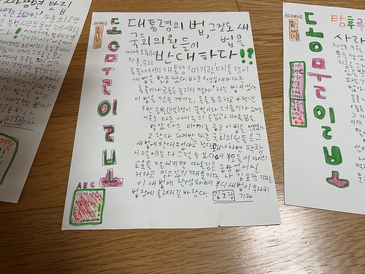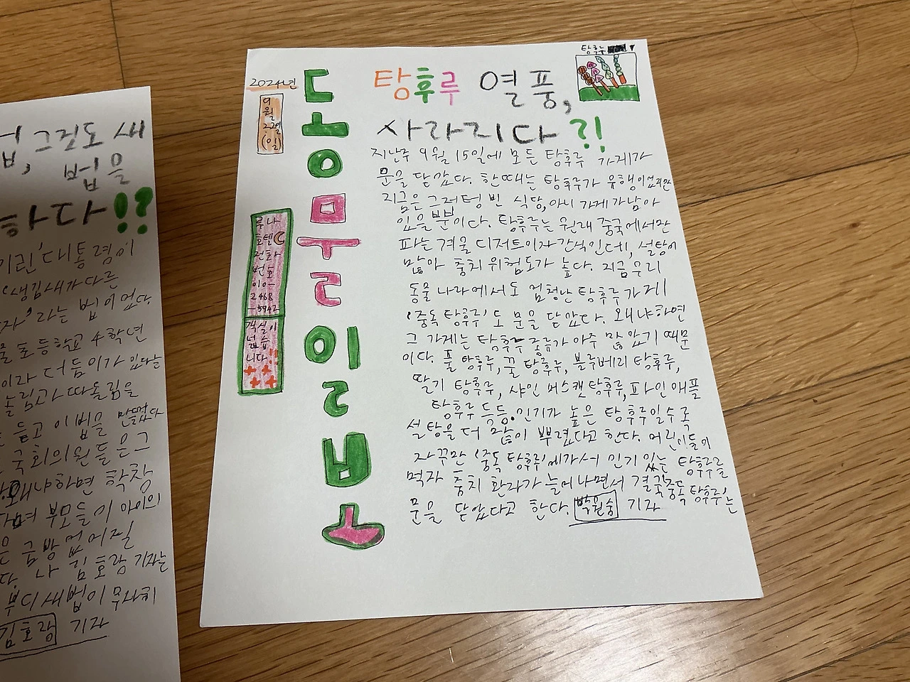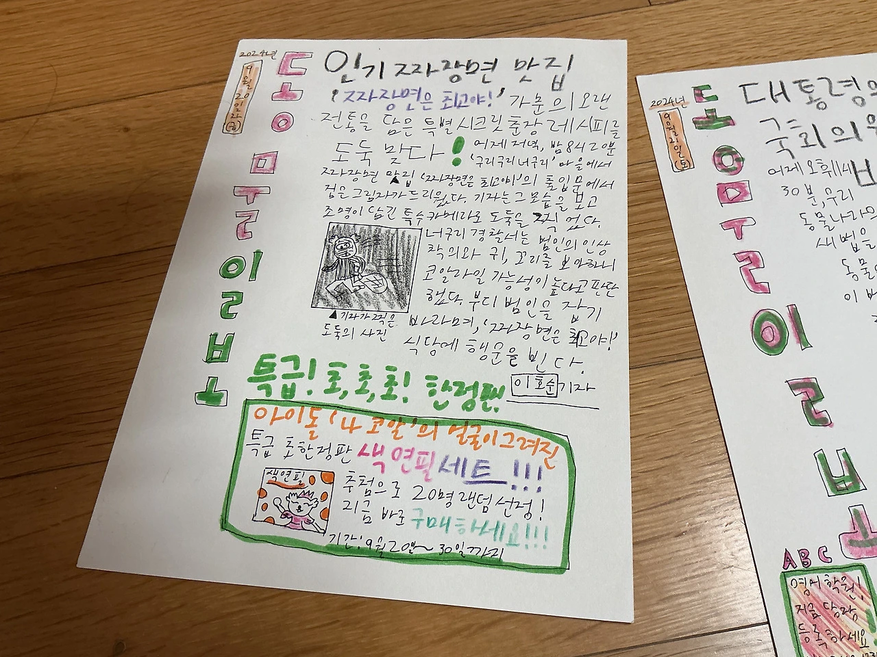 내가 4학년 때 인형놀이에 쓰고 싶어서 쓴 신문…