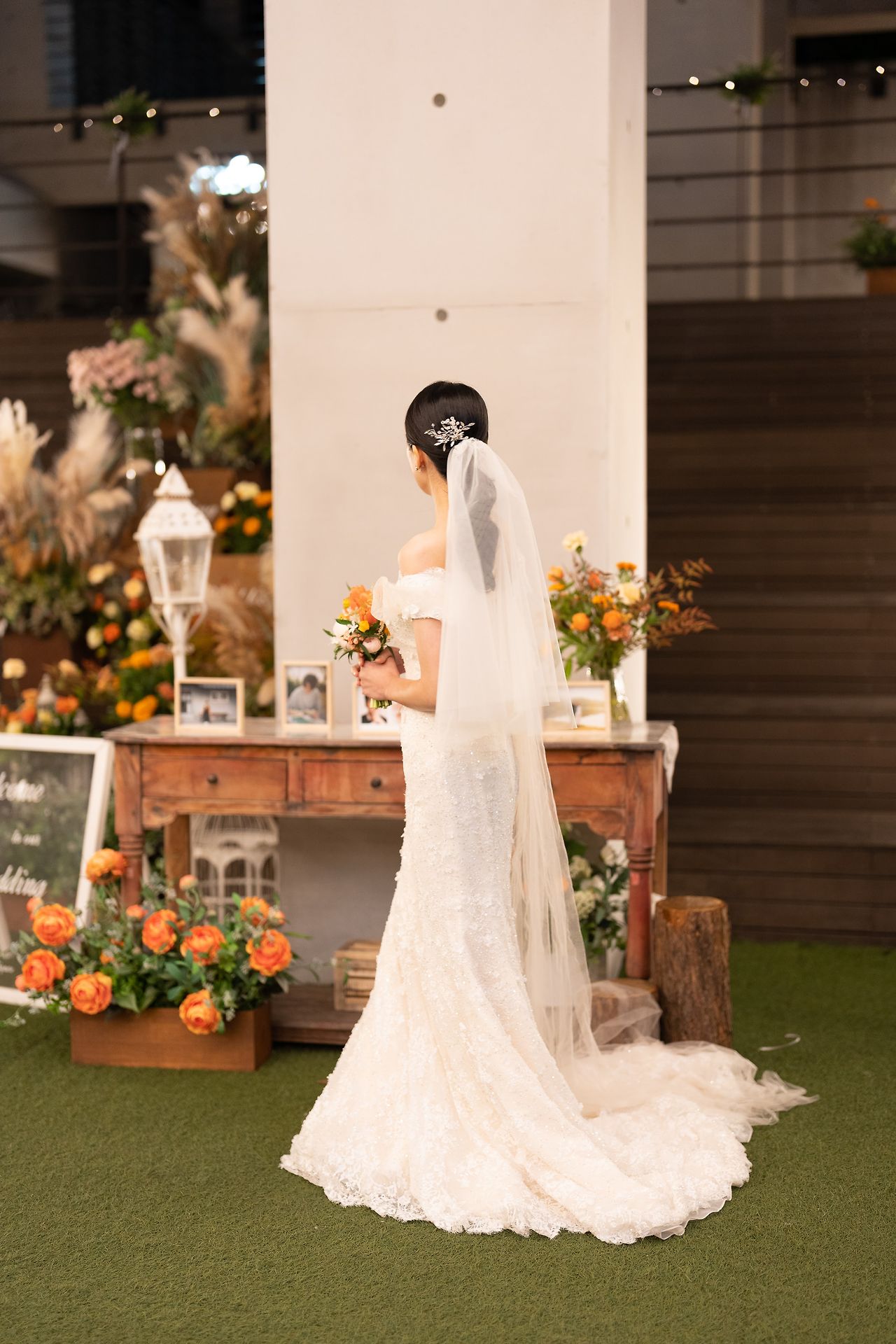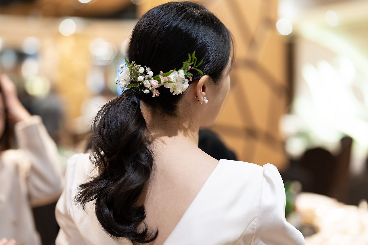 처음에는 헬퍼(드레스 피팅, 신부 입장 전후로 온갖 매무새 정리 등을 도와주시는 분) 없이 할 수 있는 결혼식이 있는지 알아봤었다. '완벽한 공주'를 만들기 위해 타인의 도움을 받는다는 것 자체에 대한 거부감이 심했기 때문이다. 헬퍼의 도움 없이 결혼식을 치르려면 우선 미니드레스를 입는 게 필수였다. 그러나 막상 드레스샵에서 피팅을 해보니 미니드레스는 2부 피로연 드레스가 중심이라 예쁜 디자인이 거의 없었다. 그나마 풍성 라인이 아닌 짧은 머메이드 라인드레스를 골랐지만 누군가의 도움 없이 입장을 하기란 불가능했다.