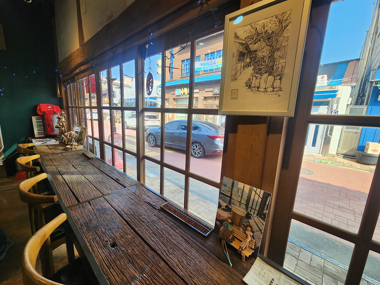 문구점을 나와 직진하다 보니 보성여관 간판이 있는 목조 건물이 보였다. 조정래 작가님이 쓴 태백산맥 속 ‘남도여관’이라는 이름으로 등장하는 보성여관은 1930년대에 지어져 지금까지 자리를 꿋꿋하게 지켜오고 있다고 했다. 당시 지리적으로 벌교가 교통의 요지로 부상하던 때라 여관으로 활용되었다고 한다. 여관 입구를 들어서니 오른쪽에 카페가 있어 차를 시켰고 남편과 나란히 앉아 도란도란 이야기를 나누며 바깥 풍경을 잠시 감상했다.