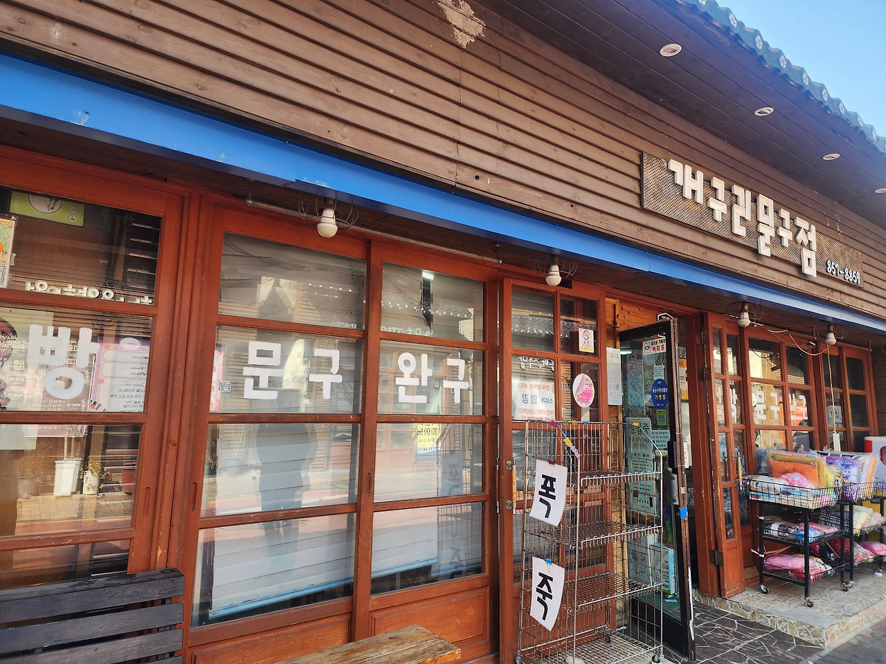 골목을 내려와 문학의 거리로 향했다. 주변 건물들과 다르게 외관이 목조로 된 문구점이 눈에 확 들어왔다. 이름도 ‘개구리 문구점’이라 어린아이처럼 무엇을 파는지 궁금했다. 생각보다 다양한 상품들이 많았다. 주인께는 양해를 구해 사진 한 컷 찍고 볼펜 한 자루를 구입해 나왔다.