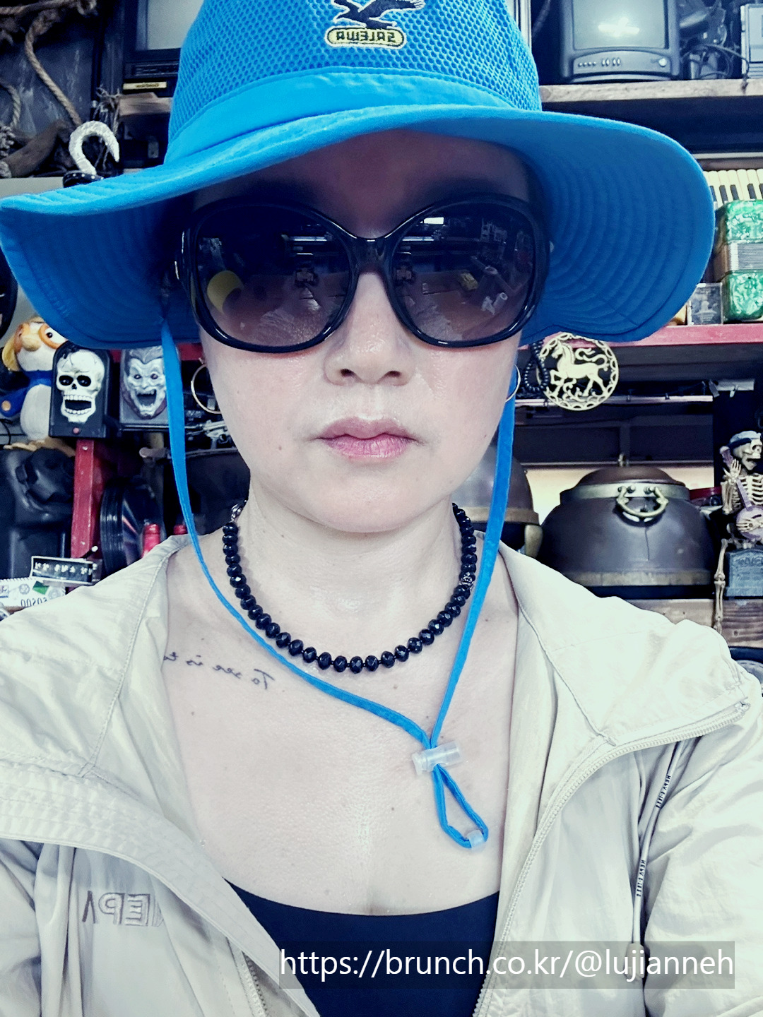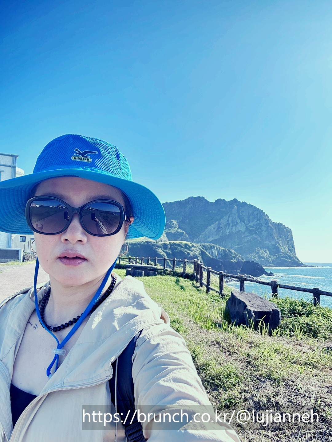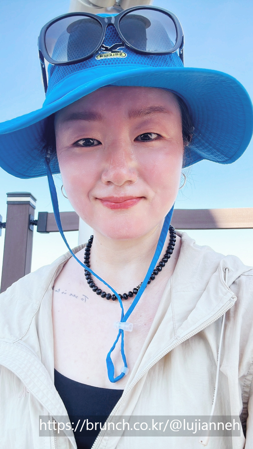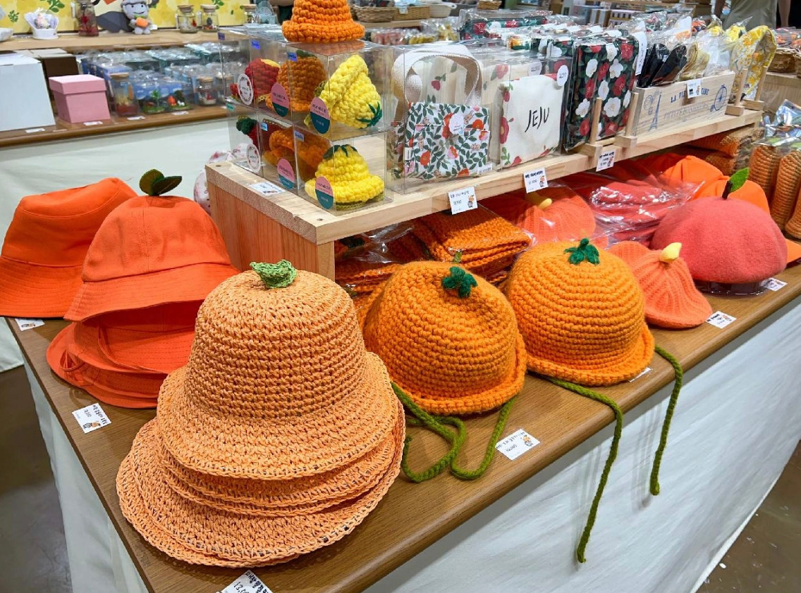 1코스를 마친 어젯밤에는 정말 오랜만에 완전한 숙면을 취했다. 창밖으로 성산일출봉을 보기 위해 일어나서 커튼을 열었더니 해도 완전히 떠올라서 환한 아침이다. 잠도 푹 자고 적당히 이른 시간에 기상해서 상쾌한 기분으로 1-1 코스를 시작할 수 있었다. 평소 아침은 먹지 않지만 걷기 위해서는 뭐라도 좀 먹어야 할 같아 어제 사놓은 바나나와 커피로 간단히 요기했다. 안 먹는 것보단 훨씬 든든하긴 하다. 정비하고 다시 짐을 꾸린다. 어제 쇼핑한 것들도 함께 잘 꾸려서 배낭을 최대한 가뿐하게 만든다. -딸들이 제주도 감귤 모자를 갖고 싶다고 해서 성산일출봉 주차장에서 가까운 곳에 위치한 @제주애퐁당이라는 기념품숍에 들러서 딸들을 위한 제주감귤모자와 감귤핀, 나를 위한 감귤머리끈, 남편을 위한 (감귤굿즈는 딱히 없어) 하루방 소주잔을 어제 구입했었다. 작년에도 @제주애퐁당에서 감귤모자를 팔았었지만 크게 유행 타지 않았었는데 올해 갑자기 대유행이 된 듯하다. 여기저기에서 감귤모자 인기 폭발이다. -