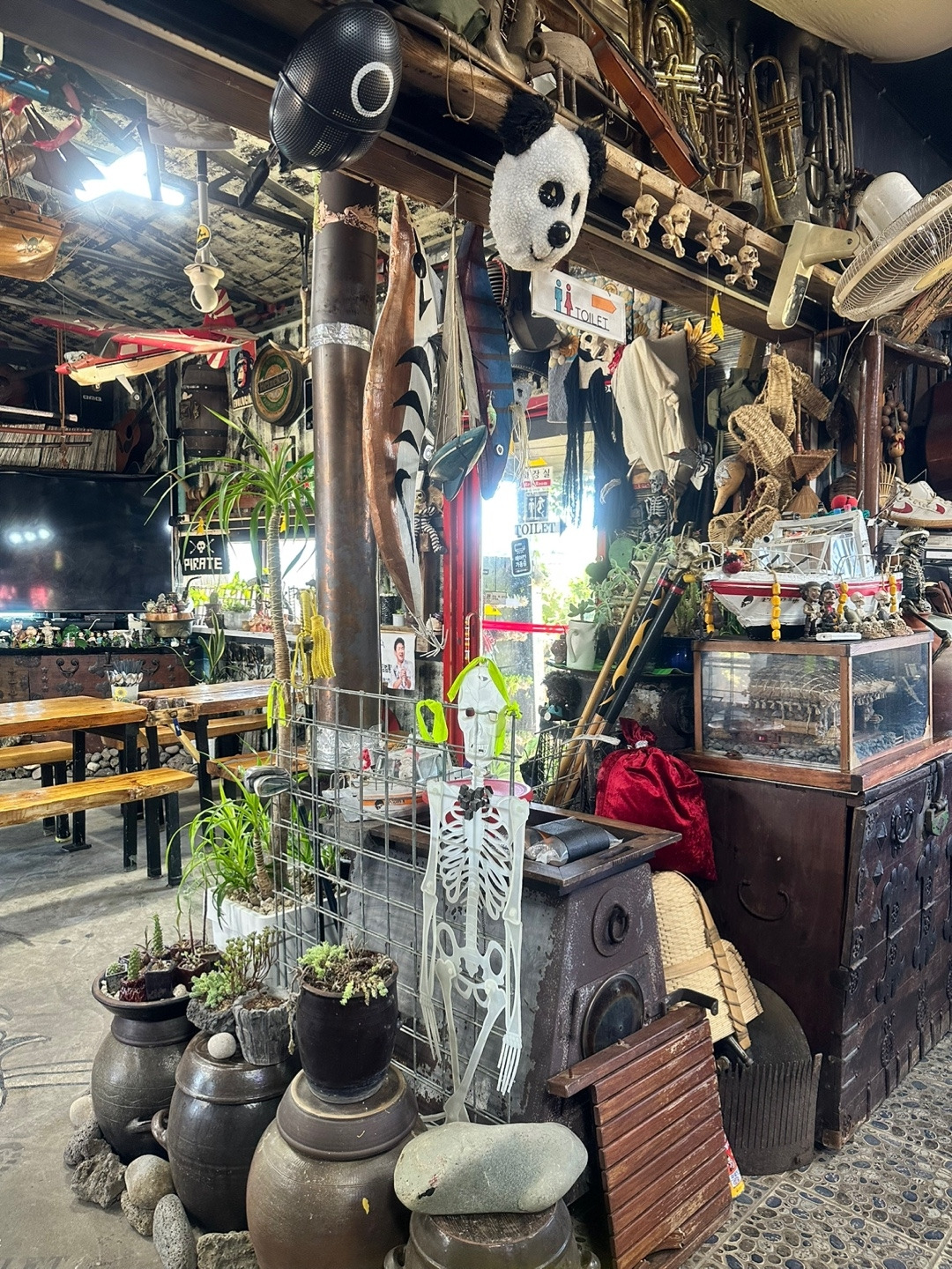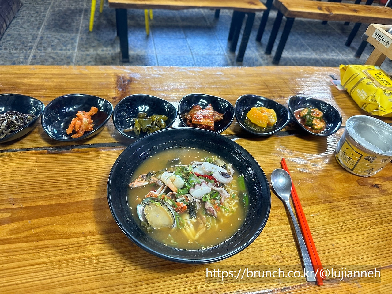 인테리어에 진심이다. 이 사장님. 주문해 놓은 점심을 기다리며 해적식당을 검색해 보니 역시 나름 유명한 집이다. 콘셉트도 워낙 특이하고 사장님 부부도 개성이 엄청 강하신 것 같다. ^^ 친절히 반찬 리필도 해주시고 궁금한 걸 여쭤 봤을 때도 잘 대답해 주셔서 편하게 식사할 수 있었다. 라면도 맛있었고 반찬도 맛있었다. (돌문어만 조금 질겼어요^^;;)
