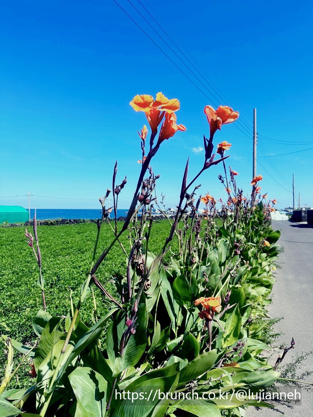 천진리 마을회관을 보며 좌회전하면 주택가가 이어지는데 돌담에, 길가에 꽃들이 많다. 작고 소박한 아름다움을 드러내는 꽃도 있고 키가 크고 도도한 꽃도 있다.
