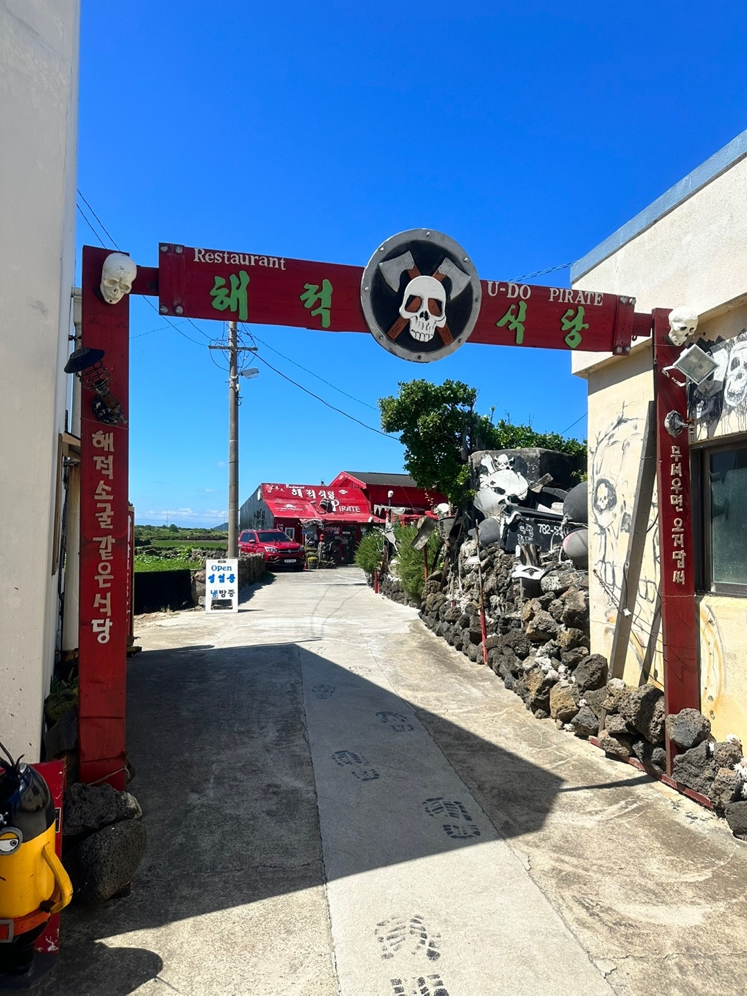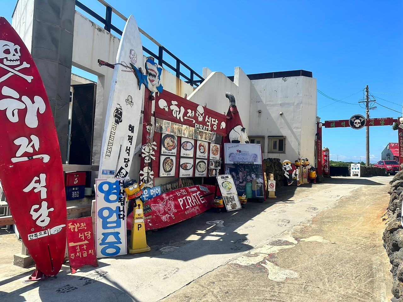 인근에서 점심을 먹고 갈까? 하고 주위를 둘러보니 갑자기 '해적식당'이라는 곳이 나타났다. 내가 좋아하는 재즈와 보사노바 음악들이 정말 바람을 타고 온 듯이 귀에 들어와 음악을 따라가 보니 해적콘셉트의 식당이 짜란~