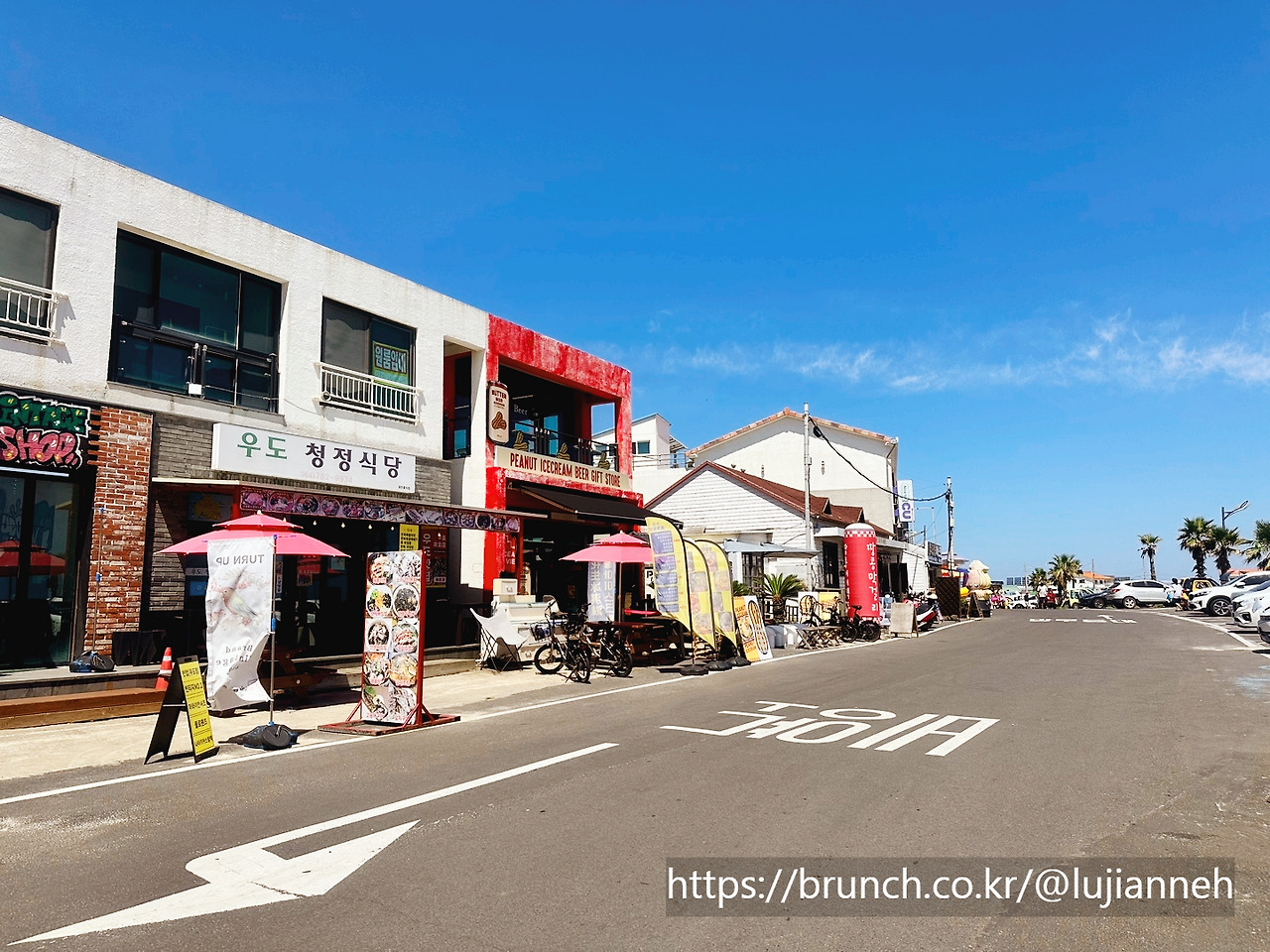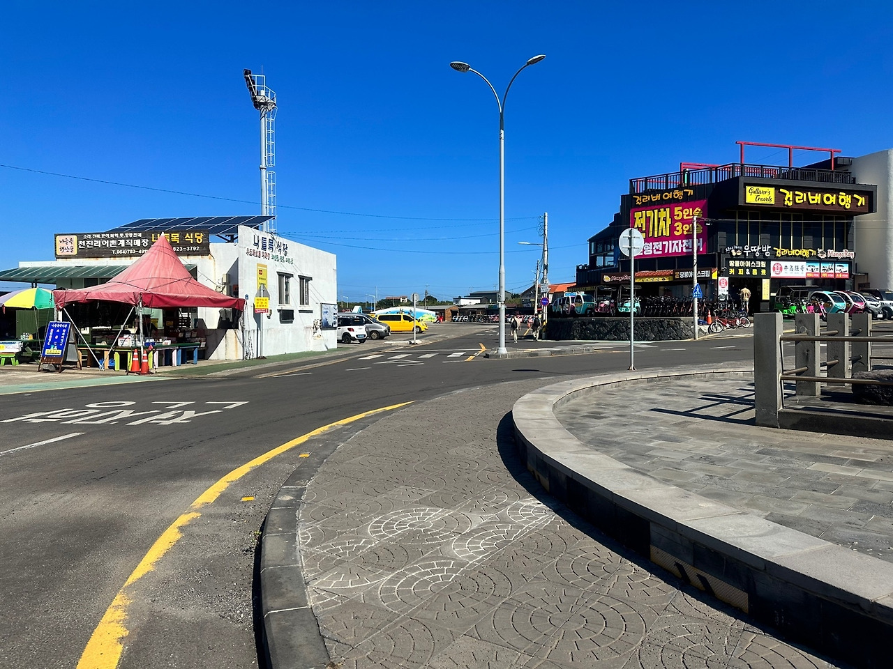 또 하나 많은 것이 관광용 전기 자전거와 전기 미니자동차이다. 전기 자전거와 전기 자동차를 탄 수많은 관광객들이 해안도로 커브 너머와 골목길에서 출몰? 아니 나타난다. 평일이 이 정도인데 주말에는 어떨까 싶다. 요즘 ‘오버 투어리즘’으로 인해 지역 주민들의 불편과 고통이 매우 많다고 하는데 우도는 어떨지… 관광객들이 와서 지역 경제에 도움이 될 수 있겠지만 어글리 관광객이 아닌 교양 있고 품위 있는 모습을 보여 주어 관광객과 주민들이 그 터에서(누구에겐 관광지이지만 누구에겐 삶터) 서로 상생했으면 하는 마음이다. (전기 킥보드 타고 내기하듯이 빠르게 달리다가 여기저기서 넘어지면서도 자기 무리끼리 낄낄거리며 장난치는 모습들이 주변인들에게는 심히 위협적이었다. 성숙한 문화인의 태도 필요할 듯.)