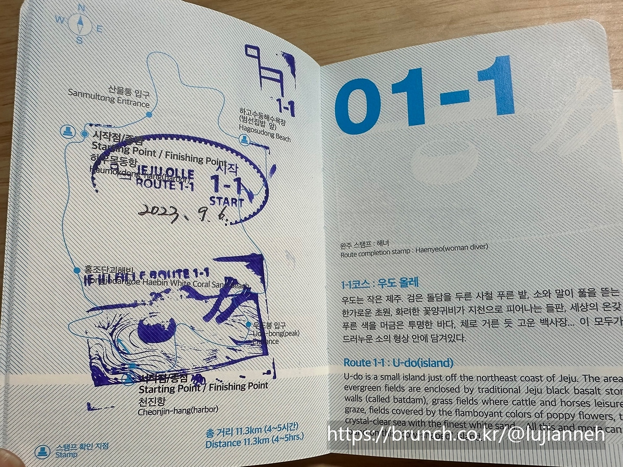 1-1코스 스탬프부터 찍고 인증샷을 남긴 후 햇빛이 뜨거워서 조금이라도 덜 더울 때 걷는 것이 좋을 것 같아 바로 걷기 시작한다. 정방향으로 걷기 시작했고 '우도해녀항일운동기념비'를 가장 먼저 사진으로 담았다.