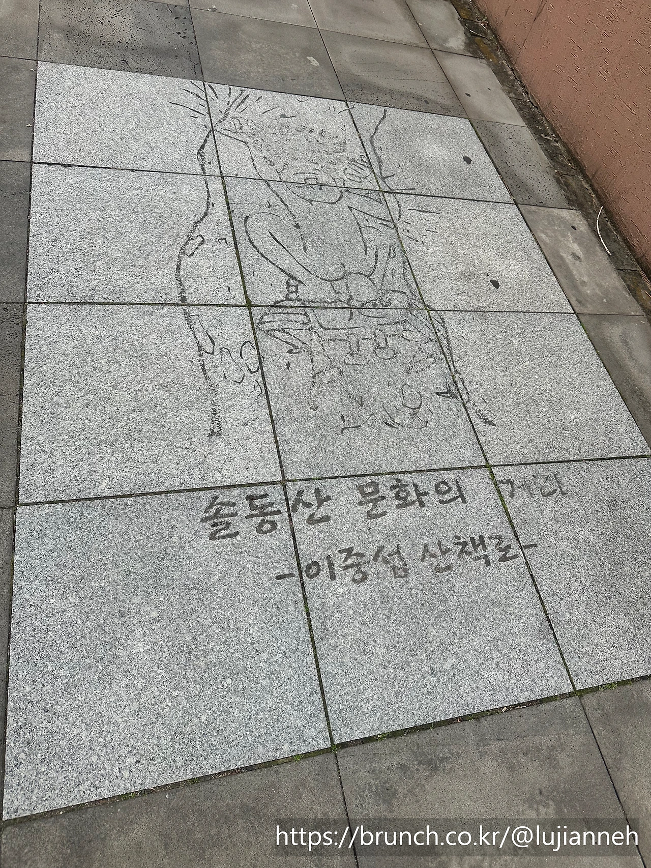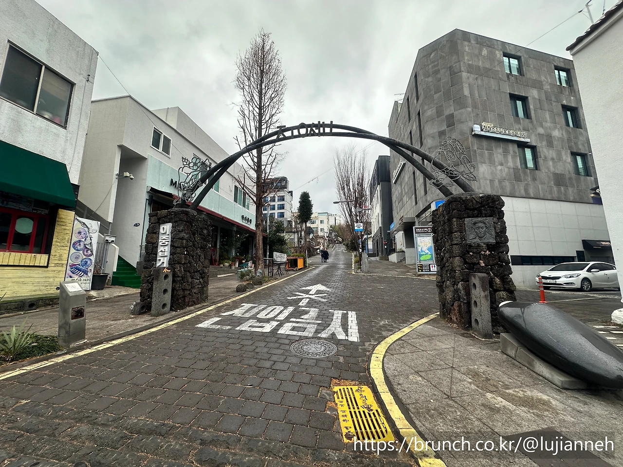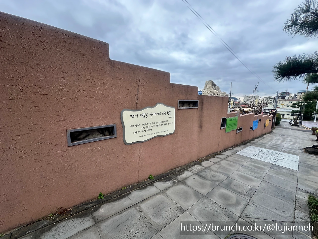 어쨌든 이제부터 서귀포 시내로 접어들었다. 시간은 대략 12:30에서 13:00 정도 되었던 것 같다. (이번에는 사진을 많이 못 찍어서 대부분의 시간 측정을 기억에 의존해야 한다.) 6코스를 따라가다 보면 "이중섭 거리"를 만날 수 있다. 여기는 벽면에 글들도 전시해 놓았고 아기자기한 소품들도 파는 테마거리처럼 조성되어 있다.