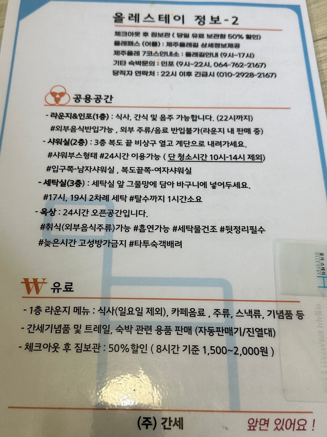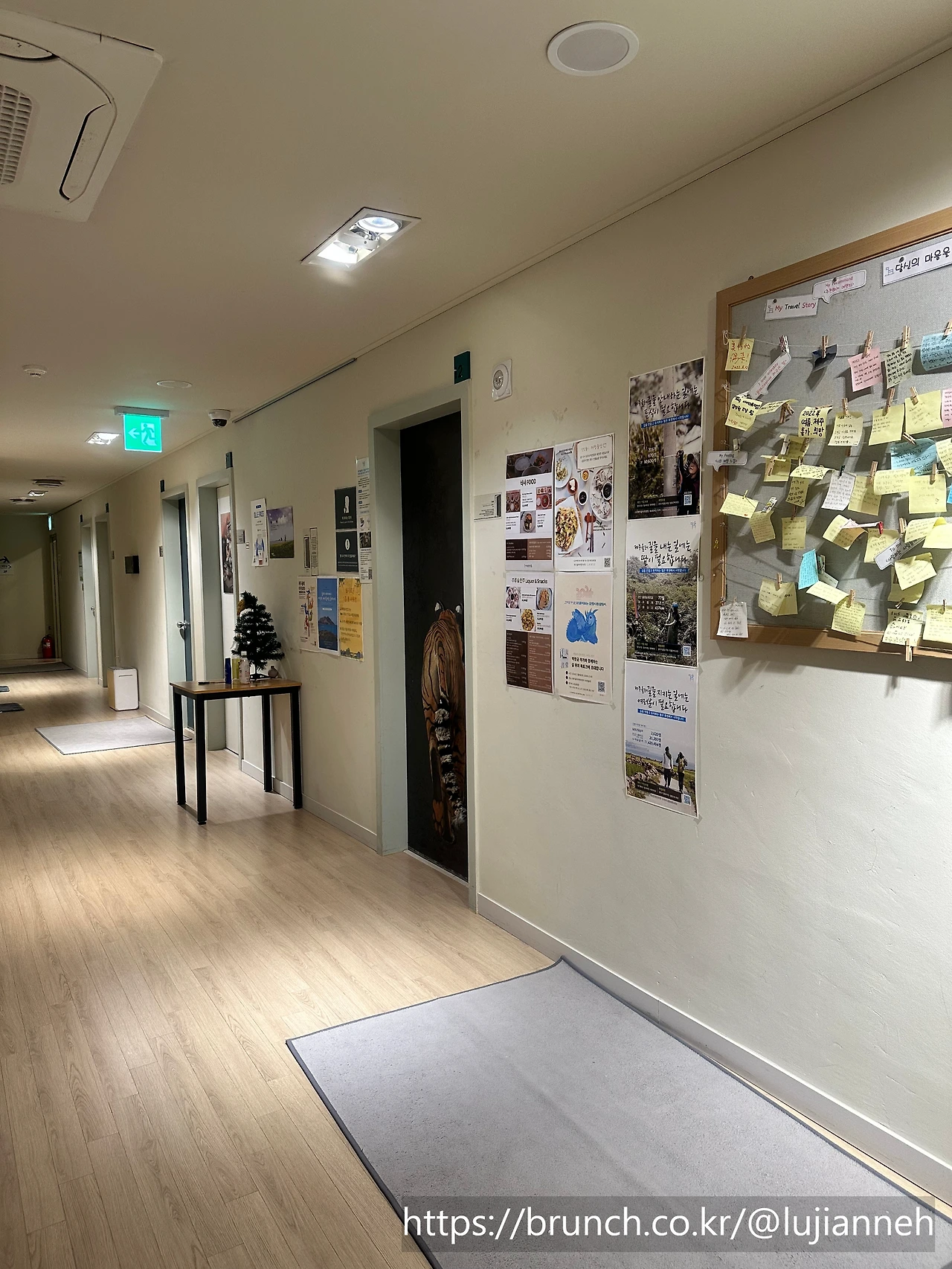 시간은 16:00에 가까워지고 슬슬 센터로 체크인하러 가기 위해 일어섰다. 카페 바로 옆집이 제주올레 여행자센터에서 관리하는 기념품 샵인데 함 둘러보는 것도 괜찮을 것 같다. 우리도 함 둘러보고 동행자는 거기서 제주 올레 패스포트도 구입했다. 센터로 돌아와 간단한 설문 형식으로 체크인을 하고 배정받은 2인실로 올라갔다. 2인실은 60,000원에 마침 행사기간이라 조식 포함이다. 가성비도 좋은데 시설도 아기자기하다. 그리고 위생상태도 깔끔해서 마음에 들었다. 다음에도 또 올 것 같다.