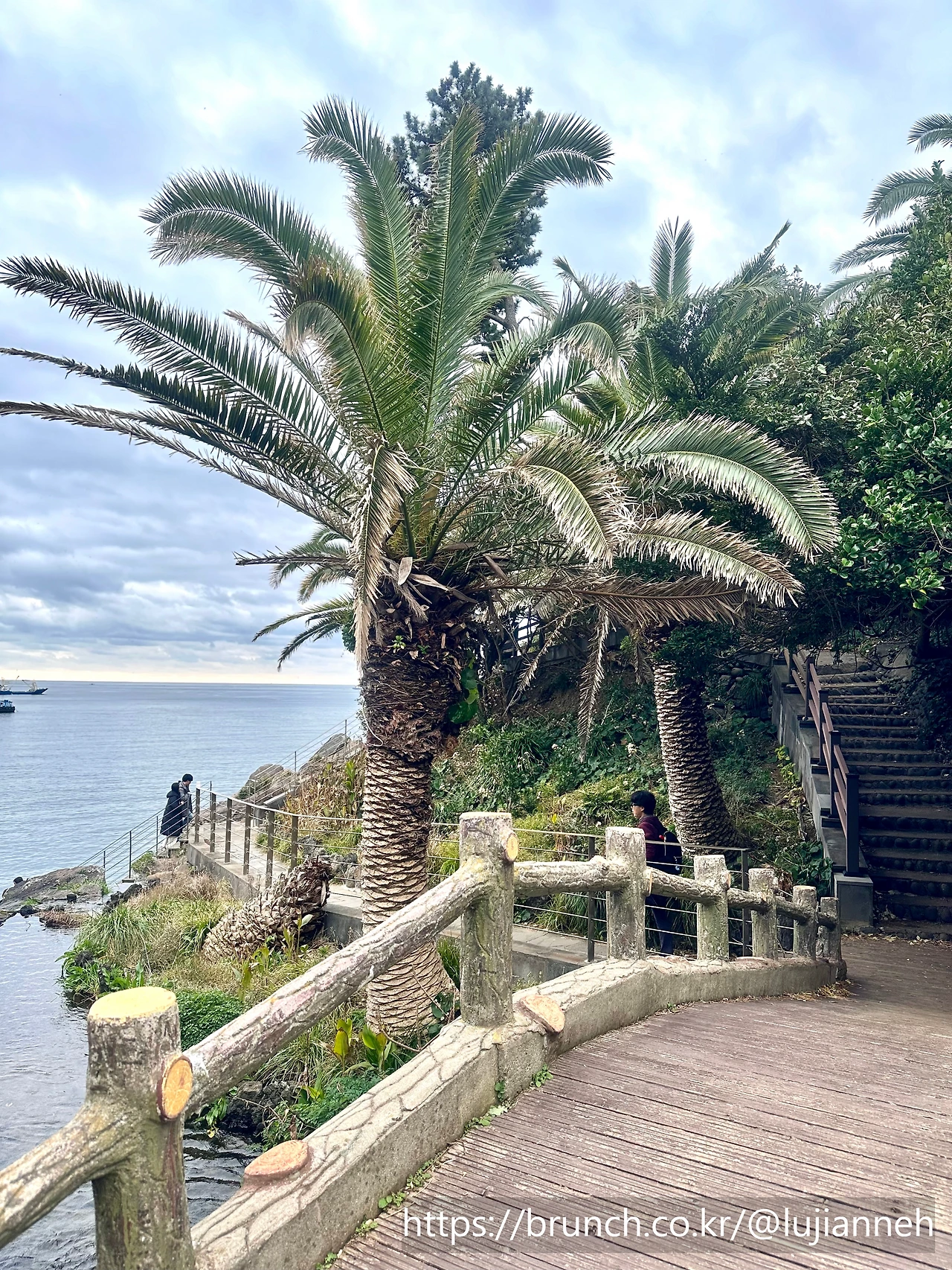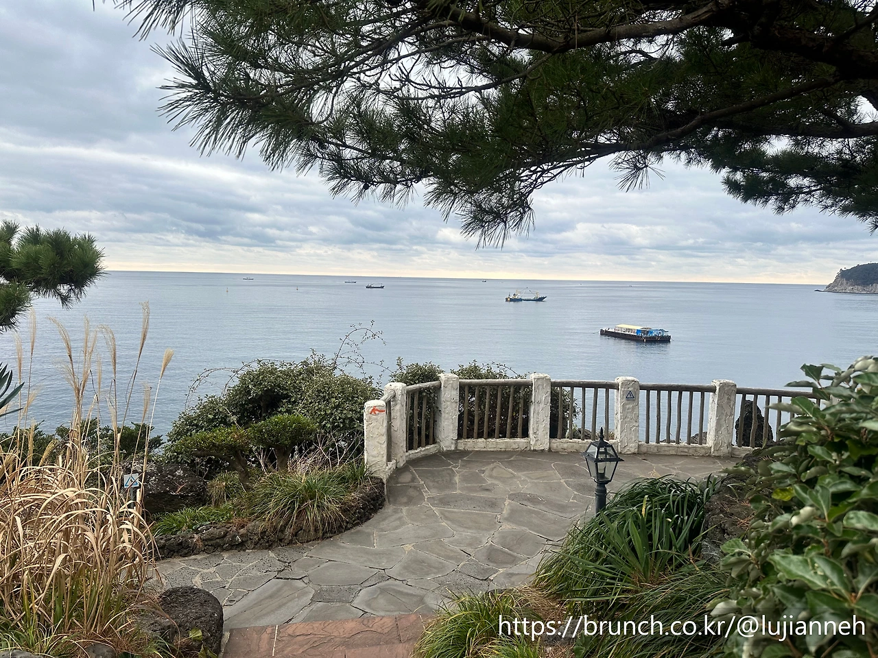 검은여 해변을 지나 계속 걷다 보니 6코스의 명물이라는 "KAL 호텔 허니문하우스" 여기서는 서귀포 앞바다가 시원하게 내려다 보인다. 뷰 맛집인 셈이다.