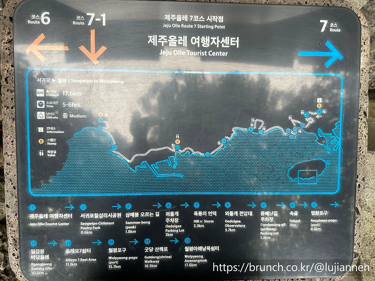 6코스와 7코스는 바다를 따라 걷는 길이다. 오름과는 또 다른 매력과 느낌이 있다. 그리고 제주 해안가의 돌 하나하나를 정비하고 길을 만든 제주올레 자원봉사자들께 경외심을 느낄 수 있는 길이었다.
