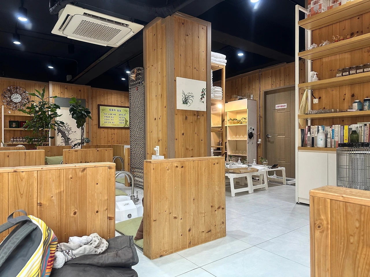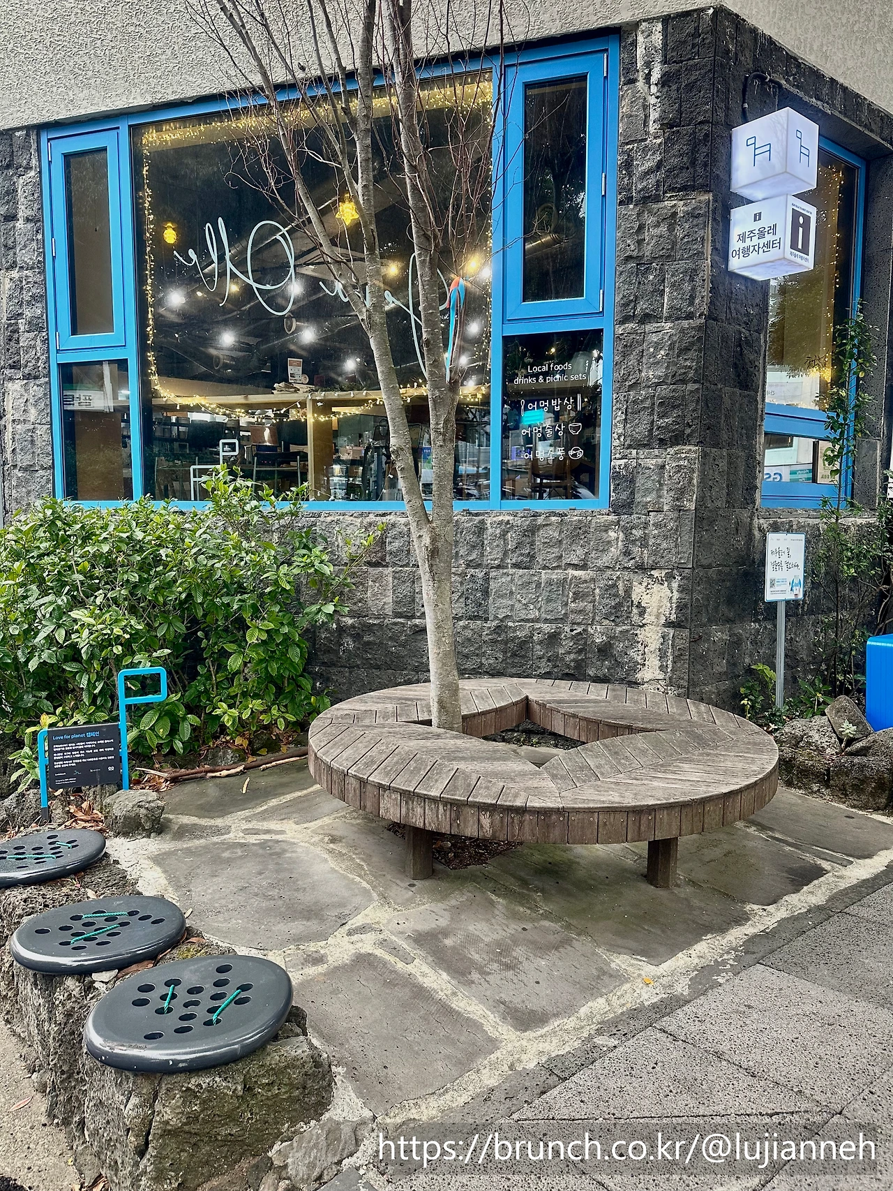 맛있게 식사하고 얼마 걷지 않으니 눈앞에 갑자기 제주올레 여행자센터가 나타난다. 아무래도 쇠소깍 첫 지점에서 출발하지 못했던 터라 시간이 많이 단축되었다. 체크인은 4시부터라서 갑자기 생긴 여유에 어떡할까 하고 보니 센터 맞은편에 "간세다리 족욕카페"라는 곳이 있다. 휴식도 취할 겸 카페에 갔더니 손님은 우리 둘 뿐이라 한산하다. 차 한잔과 30분 아로마 족욕에 12,000원. 가성비가 좋다. 손님이 없으니 족욕 시간도 더 늘려 주셔서 편안하게 족욕을 하니 다리의 피로도 풀리고 부슬비가 내렸기에 살짝 차가웠던 몸이 느슨해진다.