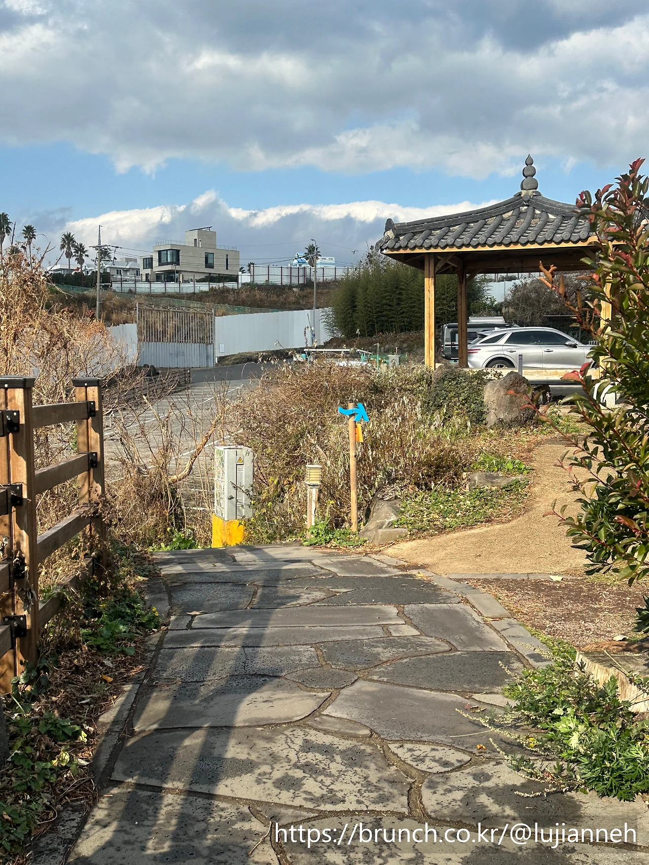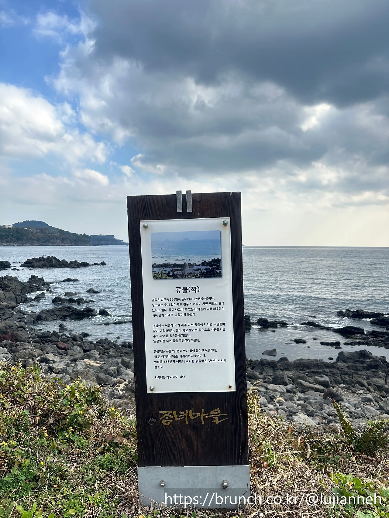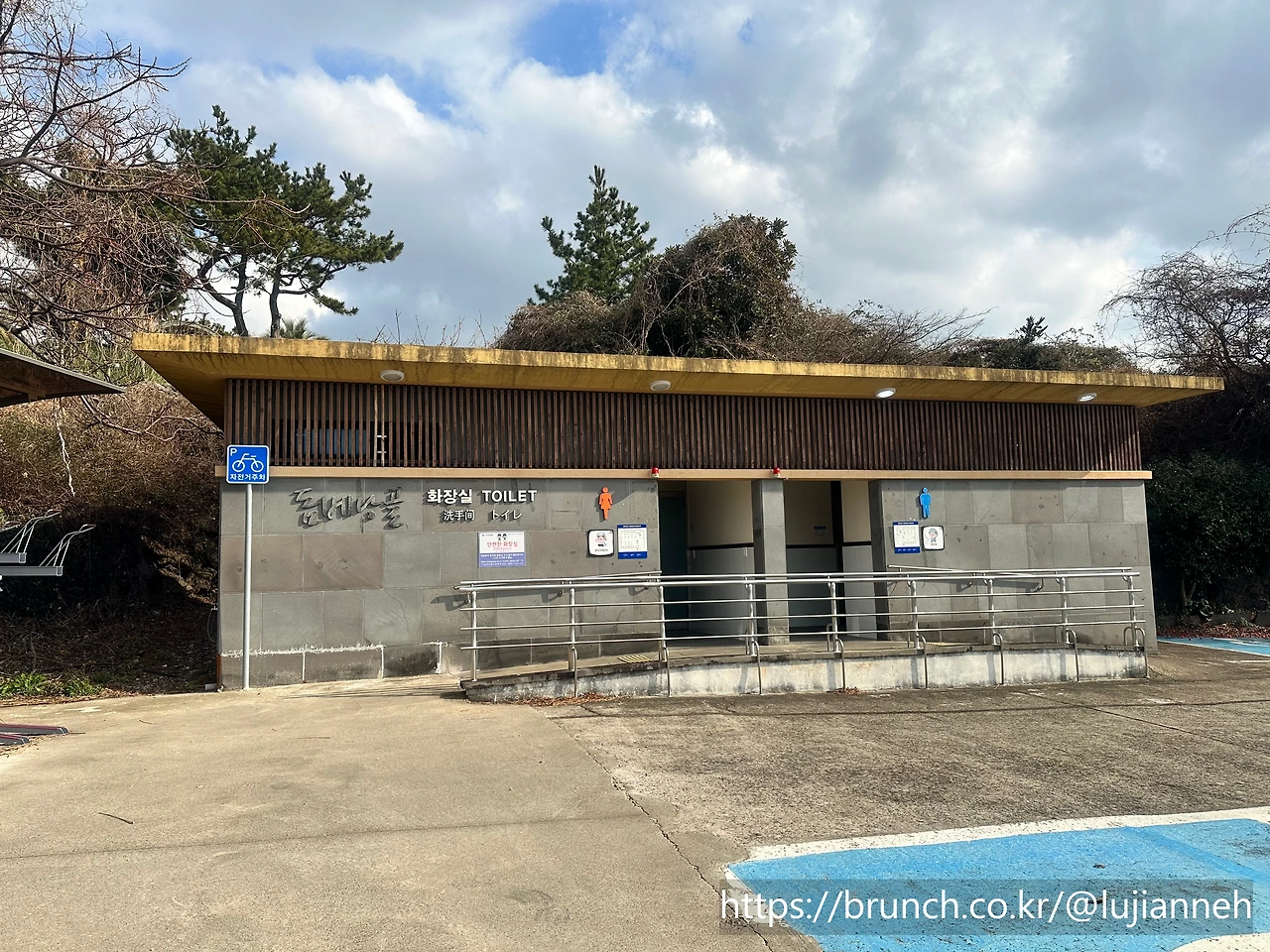 바로 이런 깨끗한 화장실이 있다. 여기서 잠시 정비하고 동네를 들어갔다가 "속골"이라는 곳으로 간다. 속골은 예전에 제주도민들이 여름더위를 식히던 곳이라고 한다. 풍경도 좋고 마음도 탁 트인다. 여기서 정글터널로 걸어가며 범섬도 보이기 시작한다.