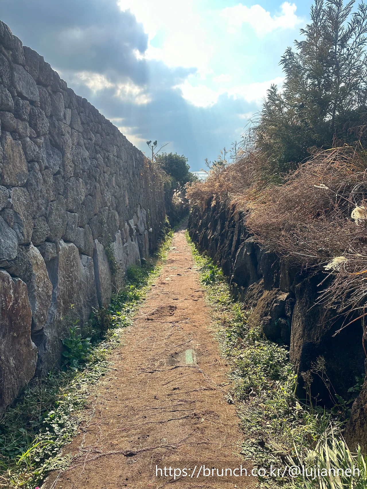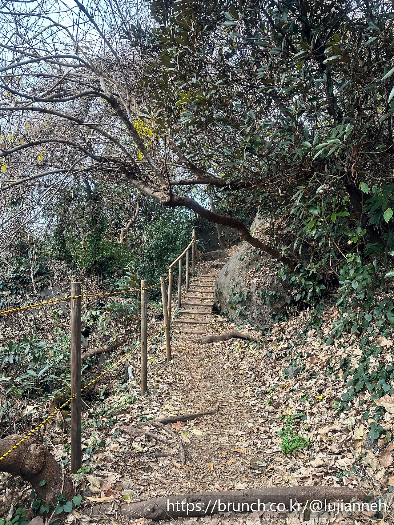 그전에는 늘 여기까지만 외돌개를 보고 돌아갔었는데 이번에는 외돌개를 왼편에 두고 계속 걸어가니 다른 각도의 외돌개도 볼 수 있고 또 해안의 멋진 절경도 즐길 수 있어서 좋았다. 역시 걷는 여행의 묘미다. 자전거나 차로 왔을 때는 생각 못했던 풍경과 느낌들이 참 좋다. 느리게 가는 시간과 공간을 오롯이 느낄 수 있게 된다. 외돌개 구간이 끝나면 아래의 오솔길 같은 구간으로 들어선다. 약간... 이상한 나라의 앨리스에서 토끼를 따라가는 느낌.