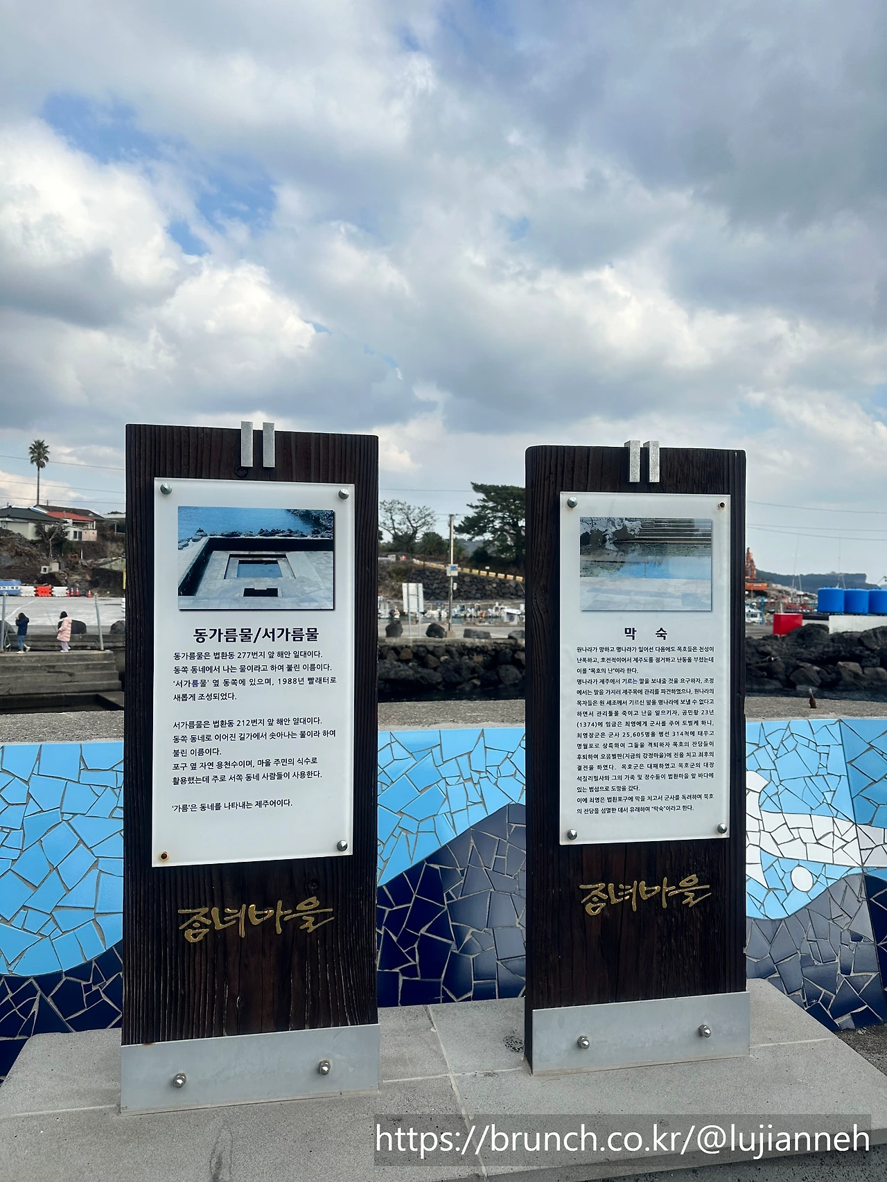 이 정글터널을 지나면 "법환포구"와 "잠녀마을"로 들어서게 된다. 아마 법환포구 있는 마을이 잠녀마을인 것 같다. 본격적인 해안길을 걷기 직전에 잠시 쉬어 가는 것도 괜찮다. "제스토리"라는 예쁜 소품점도 있다.
