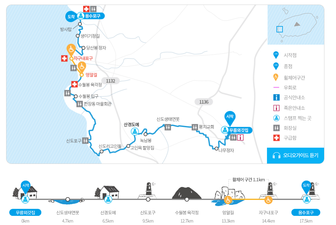용수포구 - 수월봉 육각정 - 신도포구 - 산경도예 - 무릉외갓집
