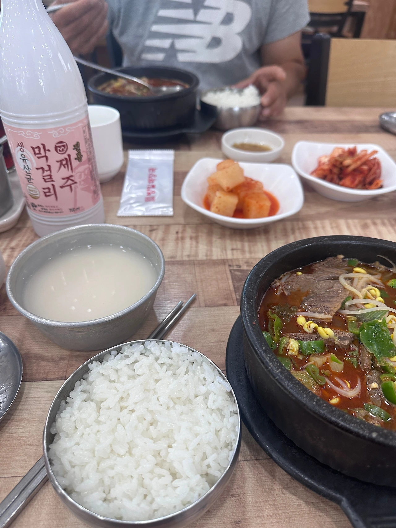 7시 10분에 제주공항 도착. 동생(이 된... 도련님도 아니고 뭐라고 불러야 할지? 호칭 정리가 필요하겠다. )이 픽업을 나왔다. 역시 반가움 게이지가 10,000 이상으로 올라간다. 일단 이동하면서 인사를 나누기로 하고 해장국집으로 달린다.