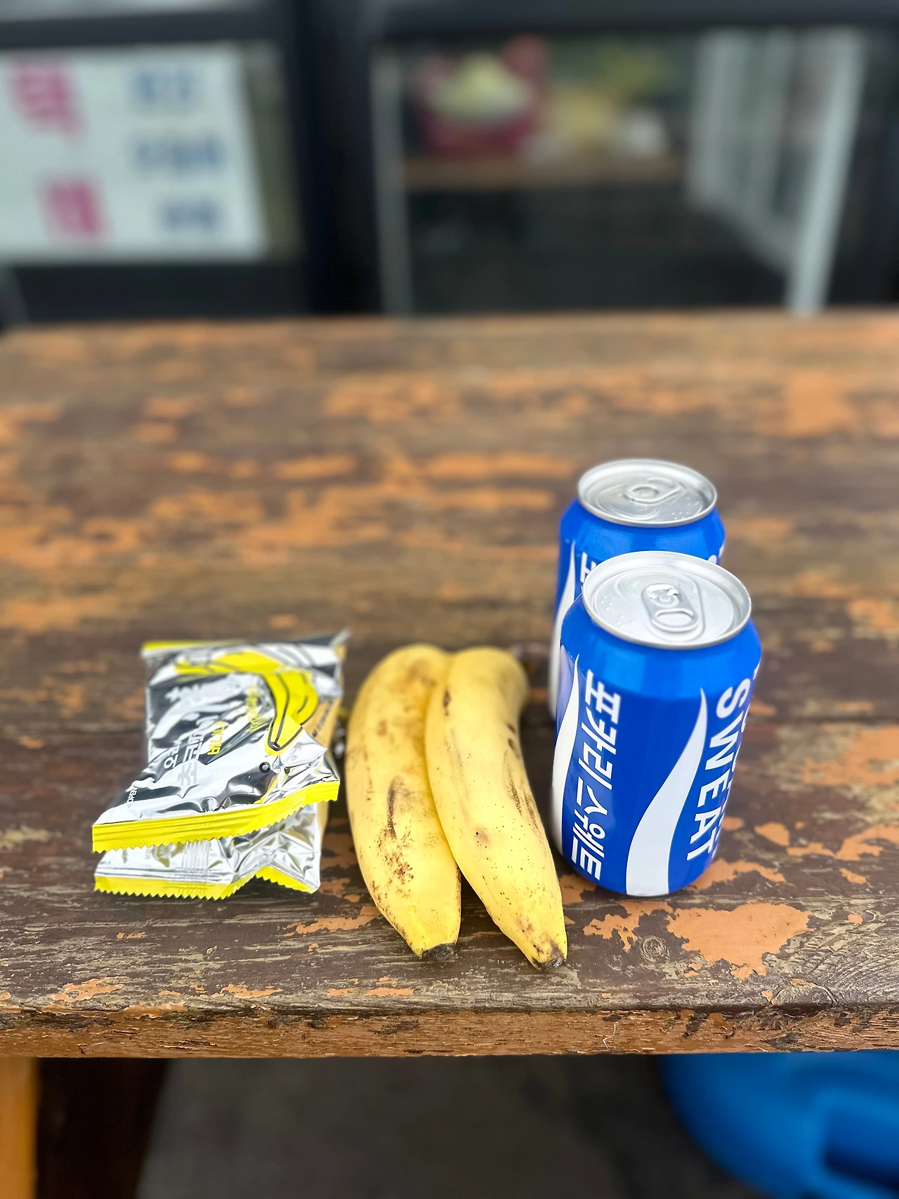 식사를 든든히 하고 용수포구까지 우리를 데려다주면서 위에 보이는 바나나와 이온 음료 등의 간식을 한 꾸러미 안겨 주고 홀연히 떠나갔다. 이제부터는 제주올레와의 시간이다.