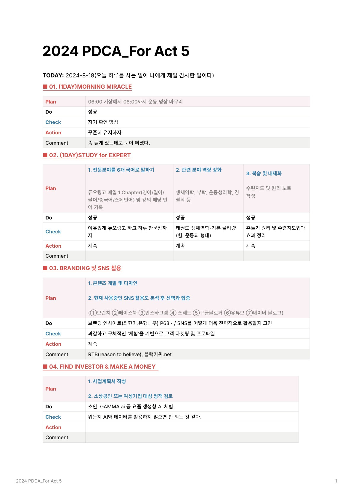 내년 센터 오픈을 위한 과정에서 동시의 나의 성장을 위한 여정으로 PDCA를 하고 있다. 여러 가지 변수와 제안들이 있긴 하지만 흔들리지 않고 가자.