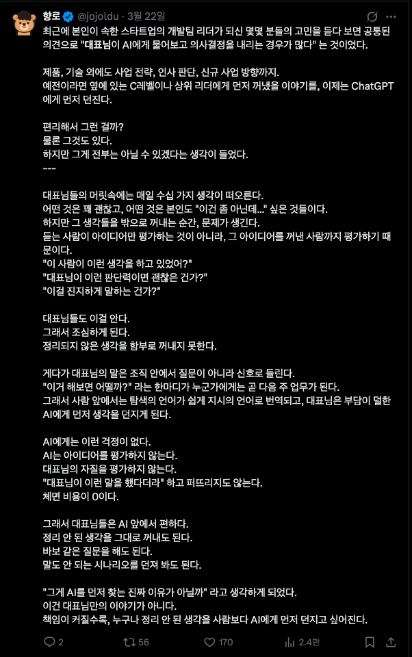 "대표님이 AI에게 물어보고 의사결정을 내린다."