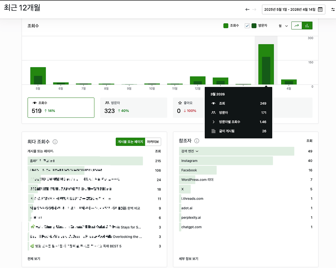 (수익화 목표를 위해서 매일 작성을 유지하고 있지만 조회가 잘 되지 않는다. 아마 경쟁자가 많아서 그런 것 같다)