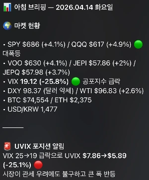원래는 내가 아침마다 주요 종목 몇 개 차트 확인하고 뉴스 훑는 데 30분 썼다. 지금은 커피 받는 동안 이미 그날 브리핑이 내 볼트와 텔레그램에 들어와 있다.