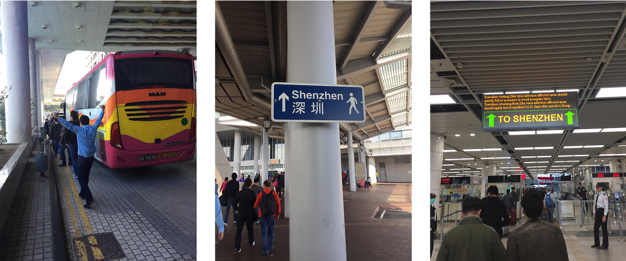 그래서 비자가 없을 때는 지하철을 타고 Lo Wu역에 가서 비자를 받아서 가면 되고, 나는 1년짜리 비자가 있었기 때문에 보통 버스를 타고 갔다. 버스는 완차이에 있는 마카오 페리 터미널 근처에서 탈 수 있고, 돌아올 때도 내렸던 곳에서 타면 된다.