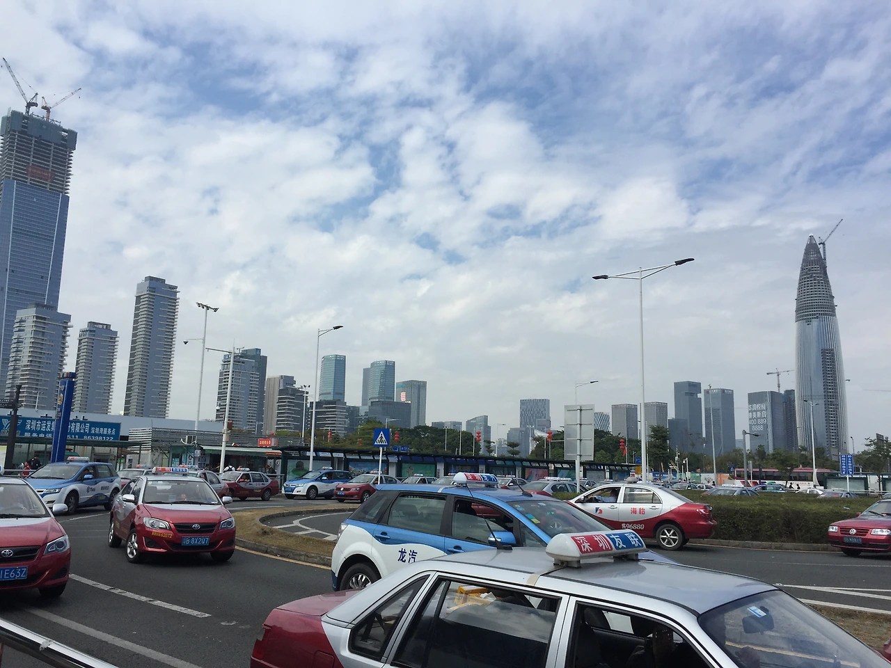 심천에 도착하면 아래 사진처럼 역 앞에 택시들이 쭉 기다리고 있으니, 택시 타고 원하는 곳에 데려다 달라고 하면 된다.