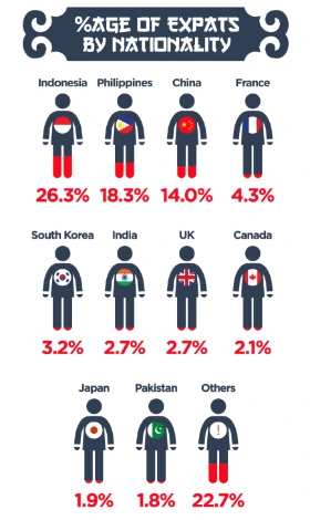 참고로 홍콩의 외국인 비율에 대해서 잠깐 이야기해보자면, 아마 많은 사람들이 홍콩은 영국의 식민지였다는 것을 알고 있기 때문에, 홍콩에 영국 사람이 많을 것이라고 생각할 것이다. (나만 그랬나??)