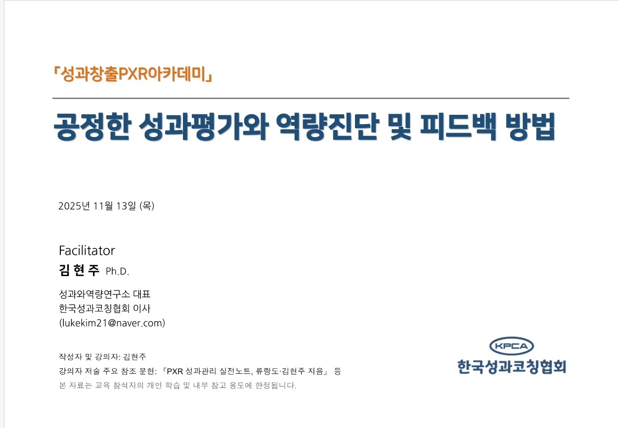 주제: "공정한 성과평가와 역량진단 방법 및 피드백 스킬"