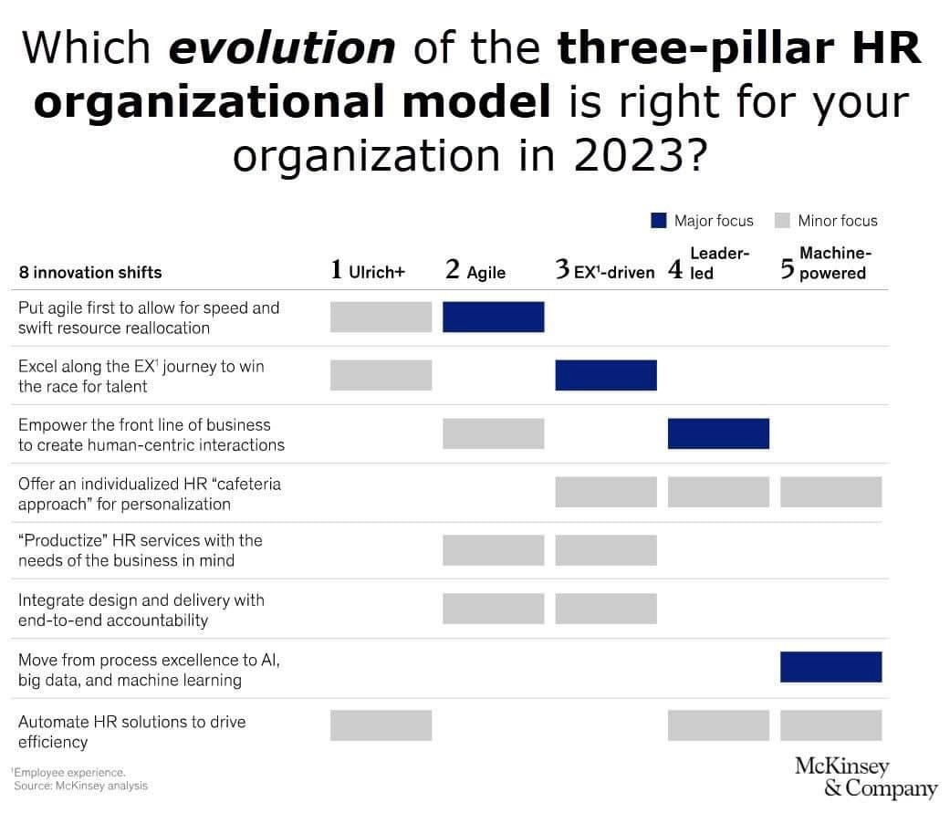 HR 운영모델에 대해 기교파에 가까운 맥킨지가 제시한 5가지 모델에 대해 정통파에 가까운 Dave Ulich가 그의 모델을 다시 환기하면서 언급한 코멘트가 흥미롭다.