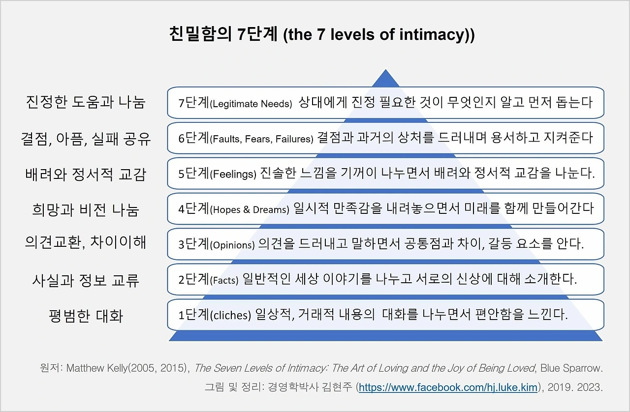 * 참조: Matthew Kelly (2015), 『The Seven Levels of Intimacy: The Art of Loving and the Joy of Being Loved』, Blue Sparrow.