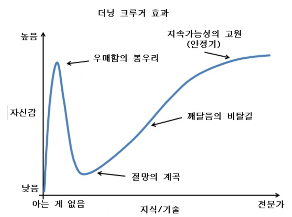 그래서 더닝 크루거 효과가 말한다. "무식하면 용감하다." "그런데 조금만 더 알면 절망한다."