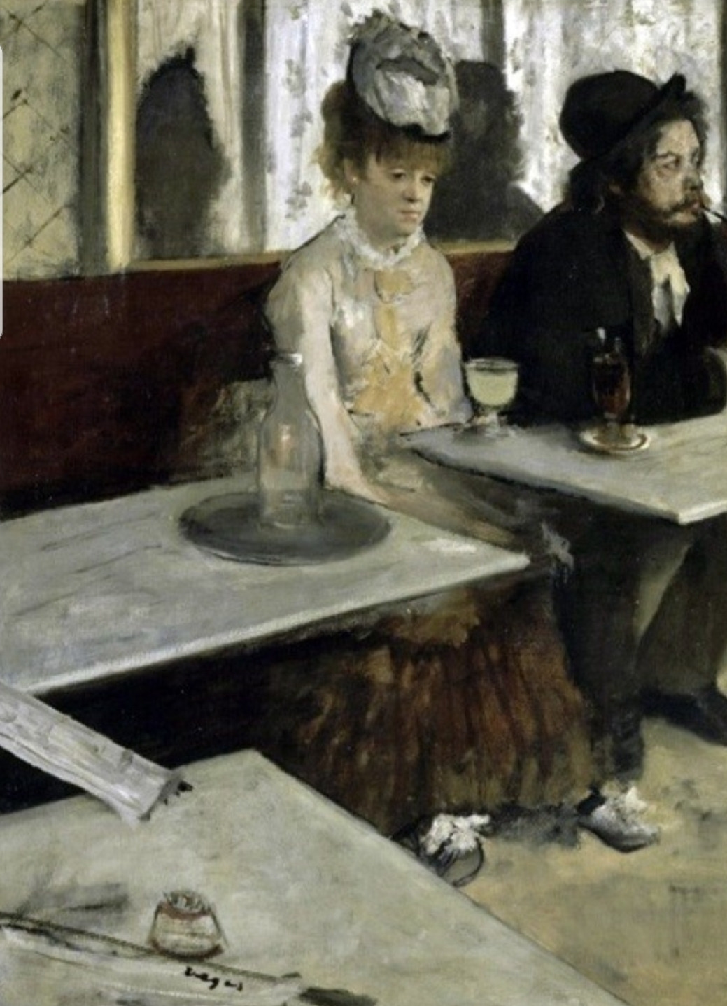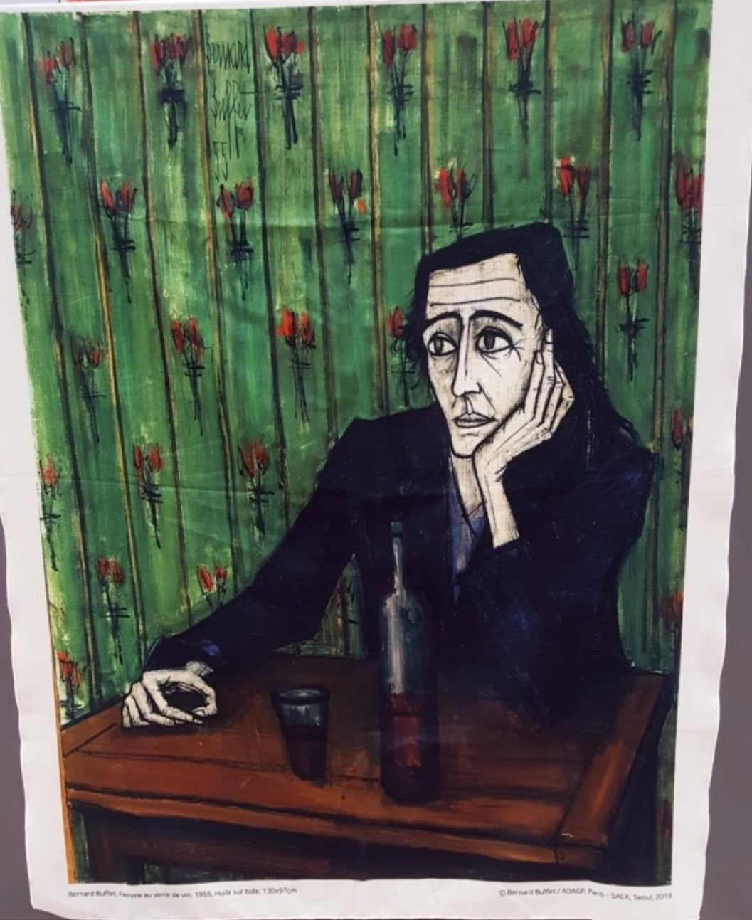뷔페의 걸작 중 하나인 1955년작 <와인 한잔과 여인>인데요, 어디선가 눈에 익은 구도가 눈에 띌 것입니다. 에드가 드가의 작품 속 여인이 좌우로 대칭된 모습이 떠오릅니다. 장 베로가 패러디한 드가의 작품은 뷔페와 거의 흡사한 구도를 보입니다. 단지 압생트가 와인이 바뀐 정도라고 봐야죠.