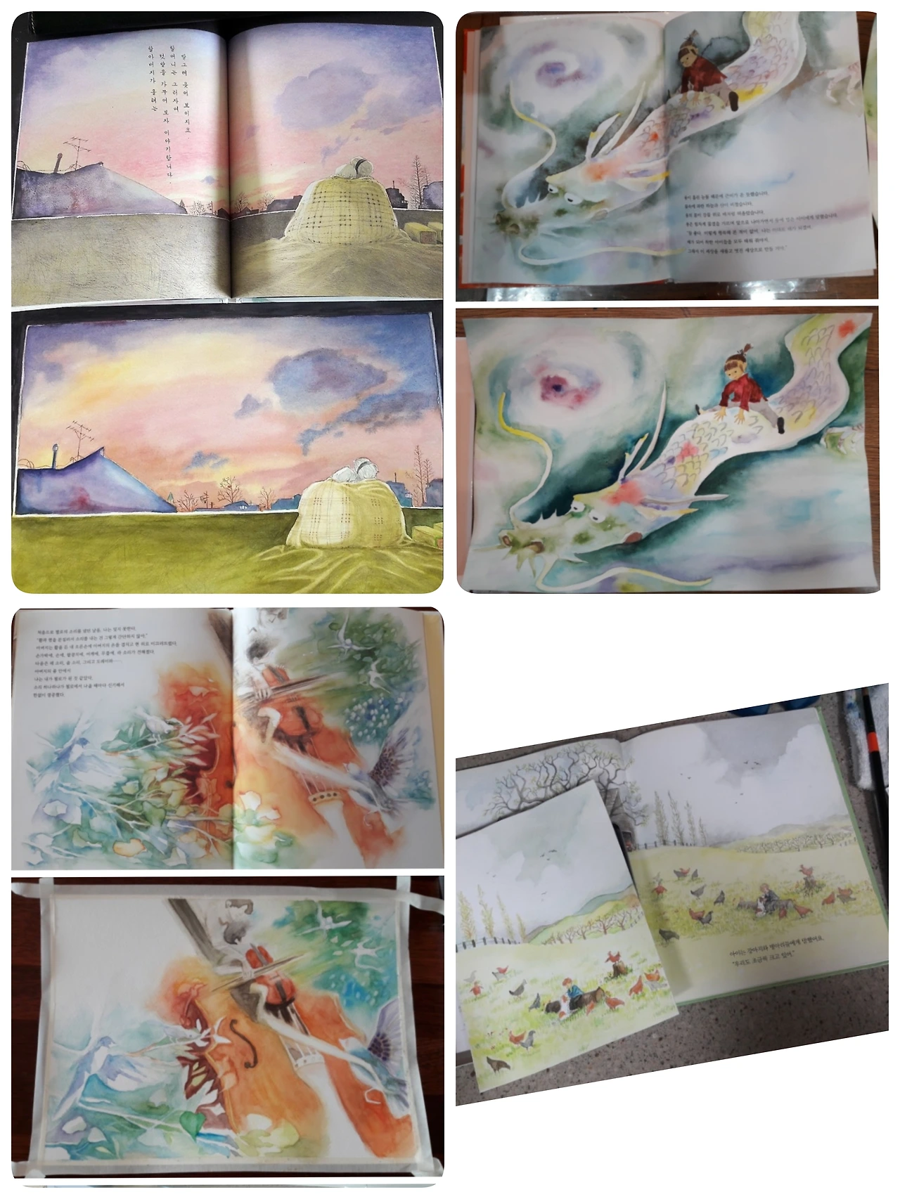 한 점 한 점 그림이 쌓여갈 때마다, "와, 이 그림 너무 예뻐.", "글이랑 정말 잘 어울려."에서 "이건 어떤 재료로 그렸을까?", "이 색은 어떤 색들을 섞어야 나올까?"로 그림책을 보는 시선도 달라졌다. 떨리는 손으로 밑그림을 그리고 색을 입히는 시간 속에 찾아오는 몰입의 순간들을 사랑하게 되었다. 그림과 글을 읽는 소리로 받아들이던 그림책을 내 두 손이 만든 빛깔로 더욱 깊이 느낄 수 있다니! 가슴이 두근거렸다.
