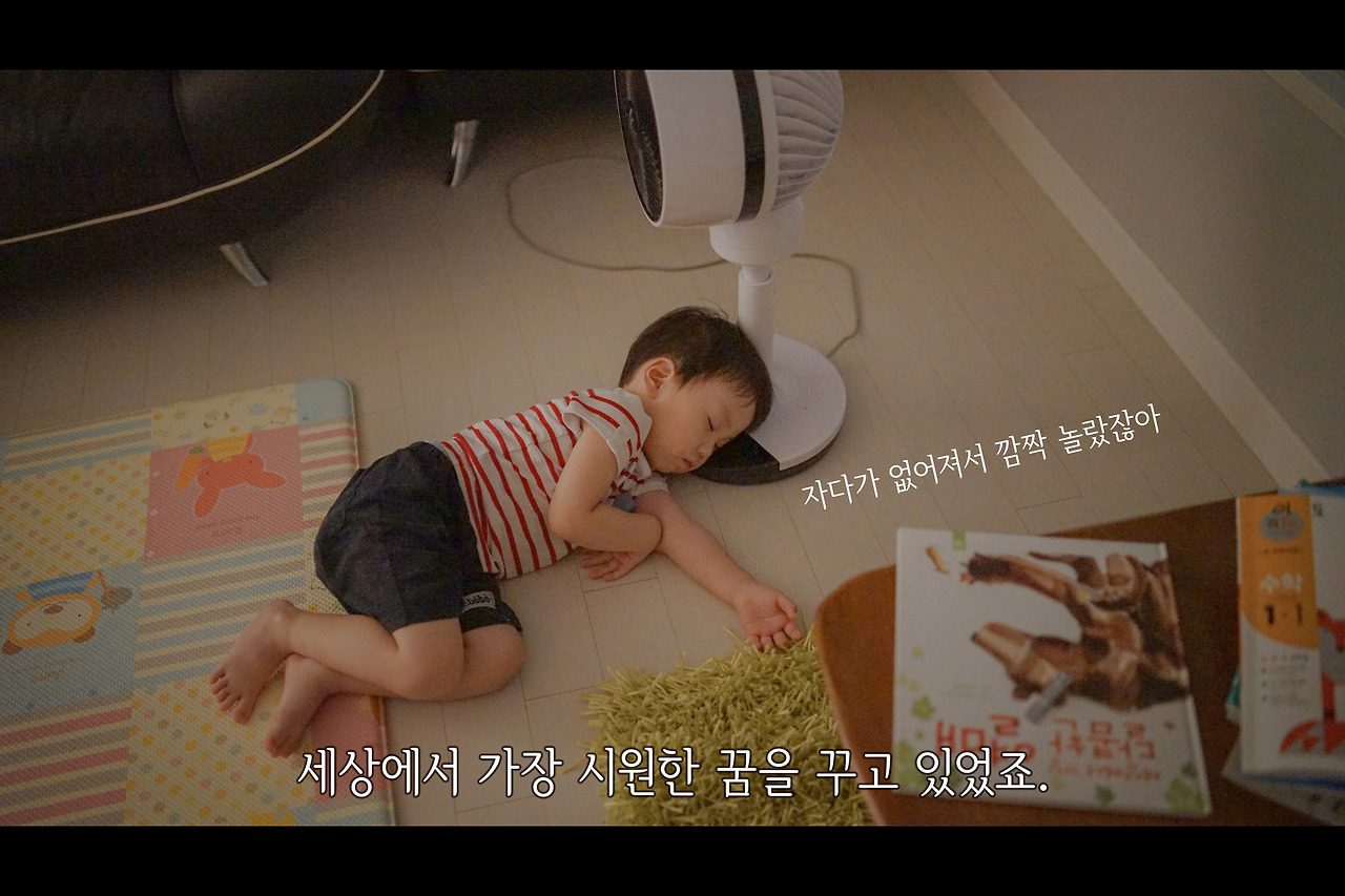 네가 뒤척일 때마다 선풍기가 꺼졌다 켜졌다 난리였지.