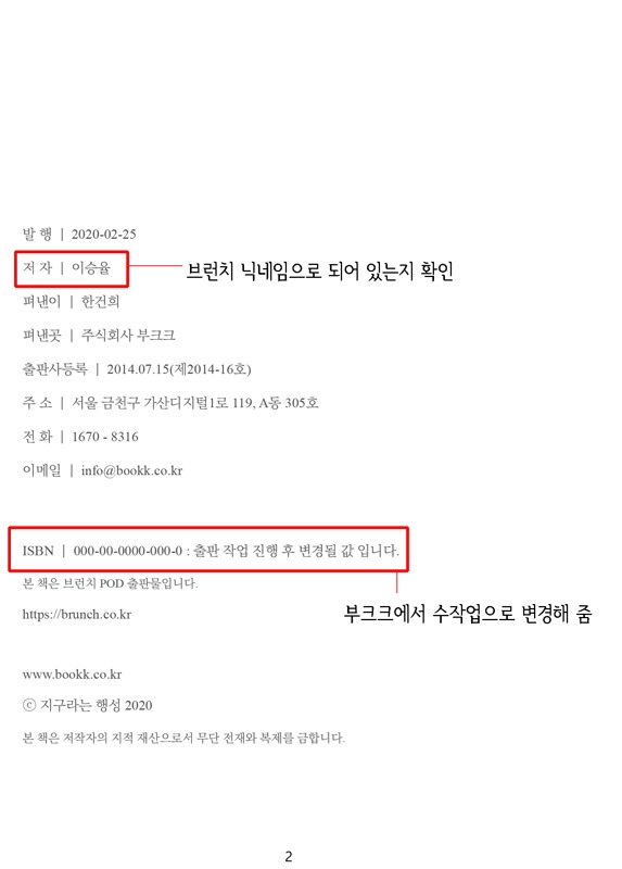 - 저자명이 브런치 닉네임으로 되어 있다면 실명으로 변경.(실명 출간이 싫다면 그냥 두면 된다.)