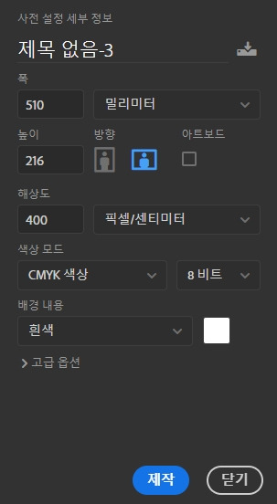 ○ 해상도는 300 Dpi이상 가로 세로 3000픽셀 이상이 권장된다. 300 dpi로 설정해도 세로 길이가 3000픽셀 이하인 경우가 있으므로 처음부터 400 dpi로 제작하는 것이 좋을 것 같다.