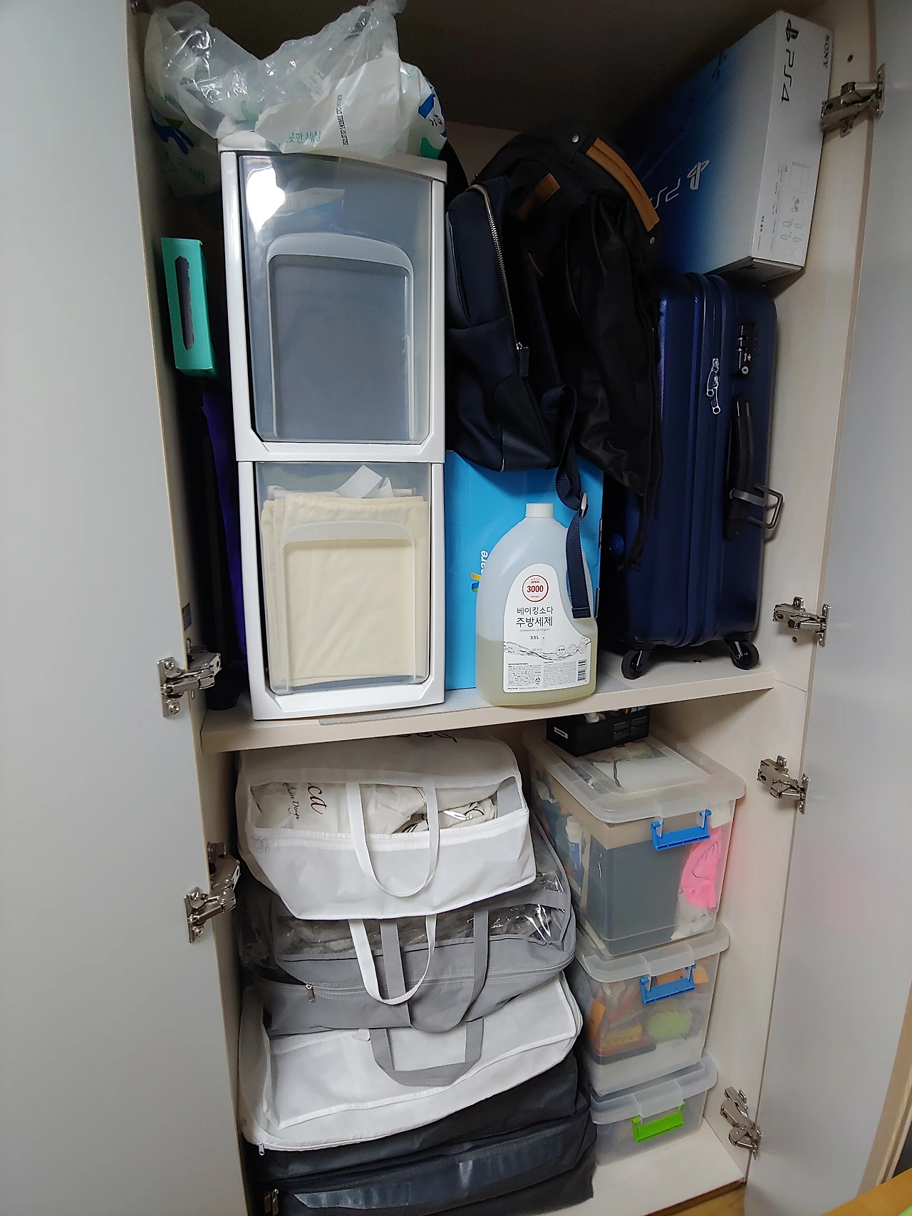 장점만 있지 단점은 없는 기존 수납장 활용해보니 기존 물건을 지속적으로 비웠기 때문에 테트리스라도 가능했다는 걸 깨닫는다.