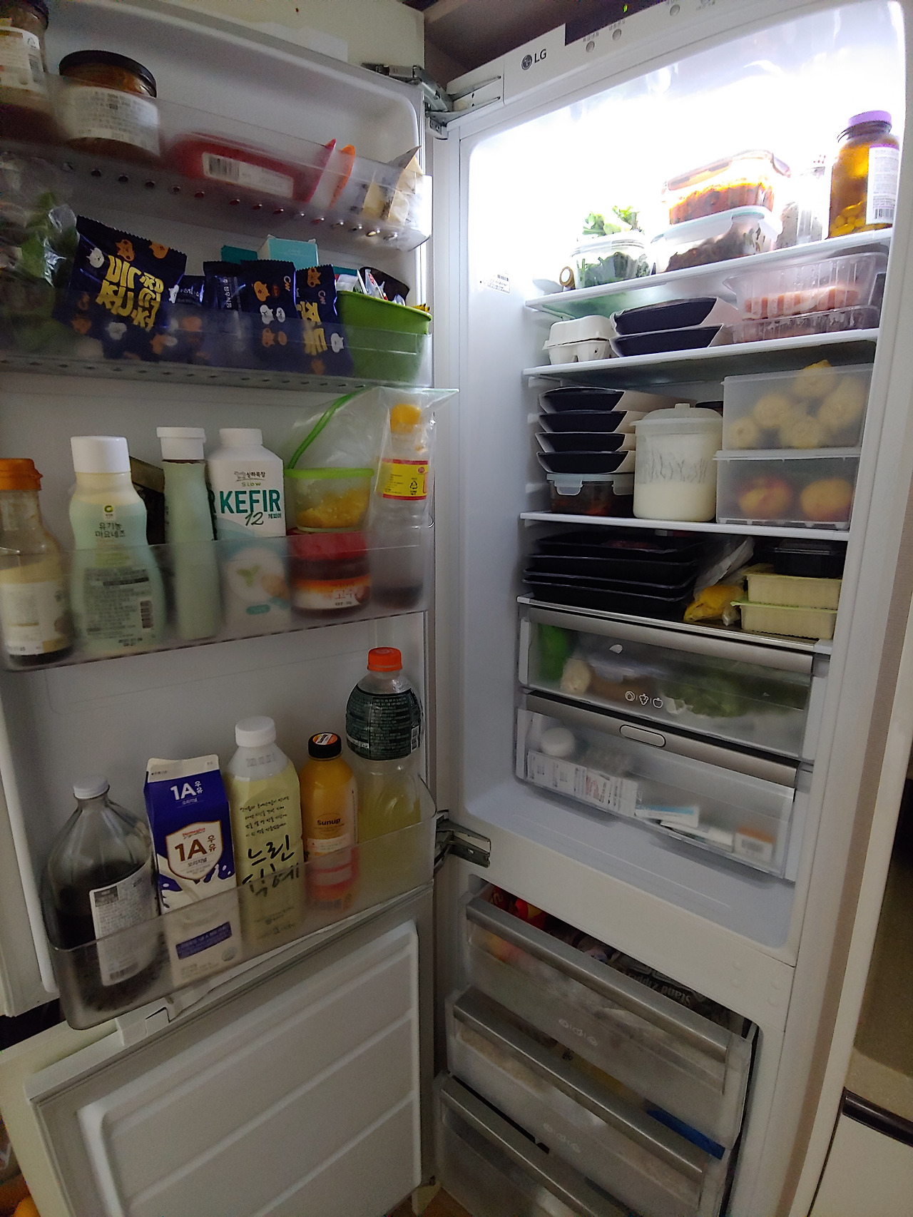 처음에 2프로 부족하다고 한 건 자주 먹는 건 유통기한 전에 다 먹을 수 있는 건 대용량을 사야 경제적으로 이득인데 공간 부족으로 살 수가 없다는 점이다. (예를 들어 매일 먹는 냉동 블루베리 및 각종 가루류를 500g 초과로 살 수 없다.)
