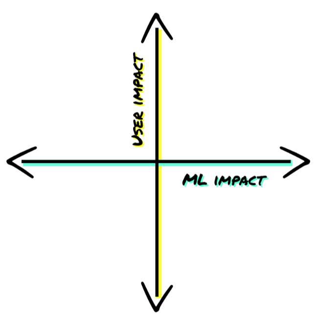 (2) 그림와 같은 2x2 플롯에 각 아이디어의 User Impact와 ML Impact가 어느 정도일지 표시해본다.