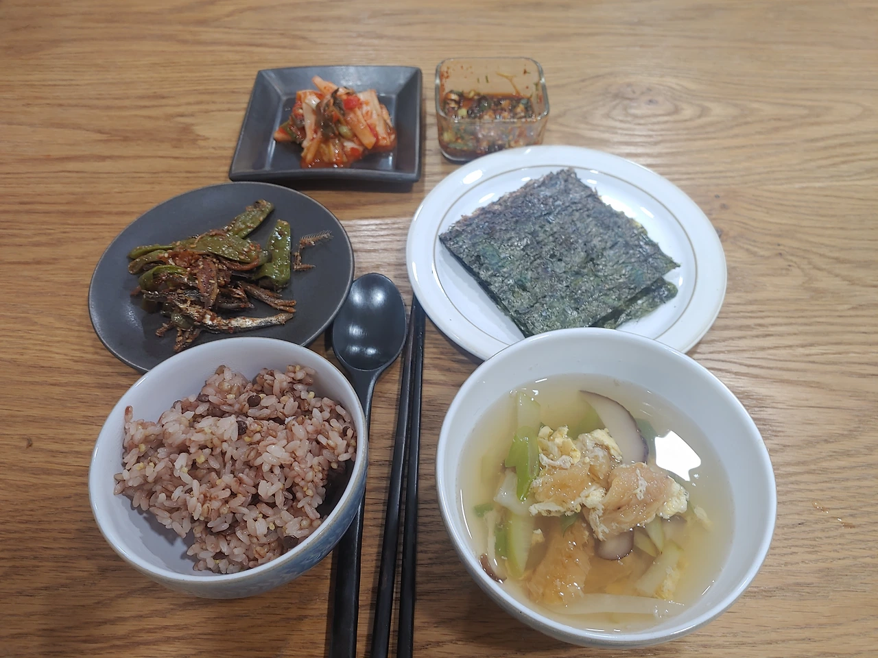 촉촉한 조밥을 구운 김에 싸서 달래장을 얹어먹었더니 고기가 없어도 하나도 허전하지 않았다. 반찬이라고는 김장통에서 꺼낸 무김치와 꽈리고추 조림이었다.