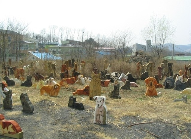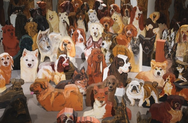 루씨: 숫자로 된 또 다른 작품이 있죠. 이번에는 천 마리가 넘는 유기견 목상으로 완성된 <1,025-사람과 사람 없이>입니다. 무려 5년 동안 이 작품에만 매달리셨다고요.