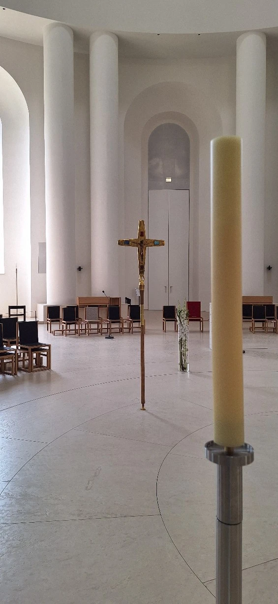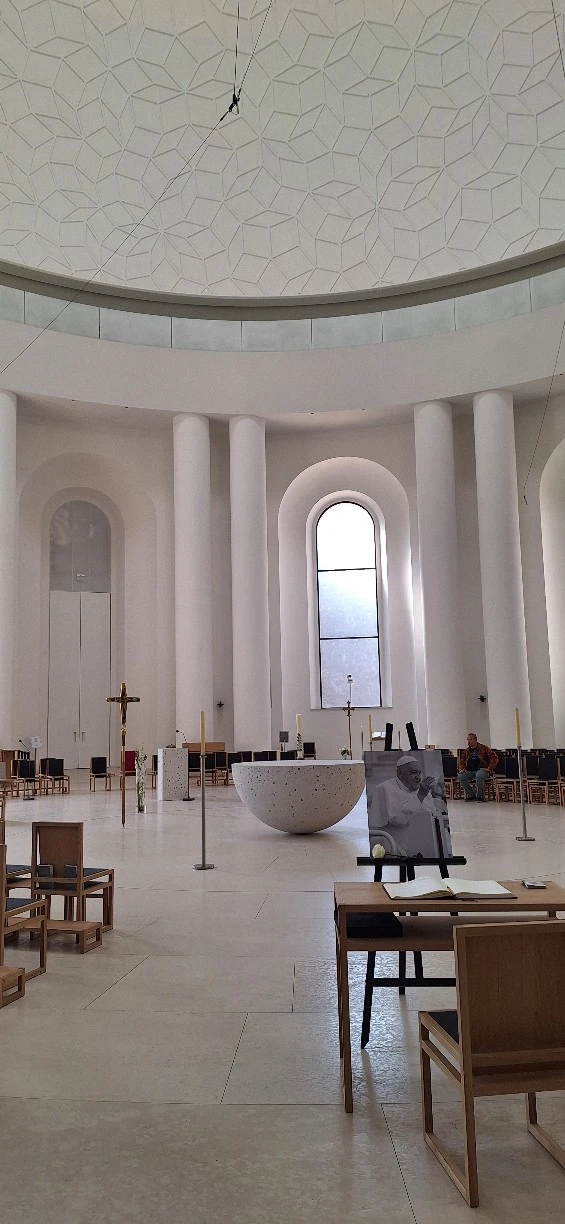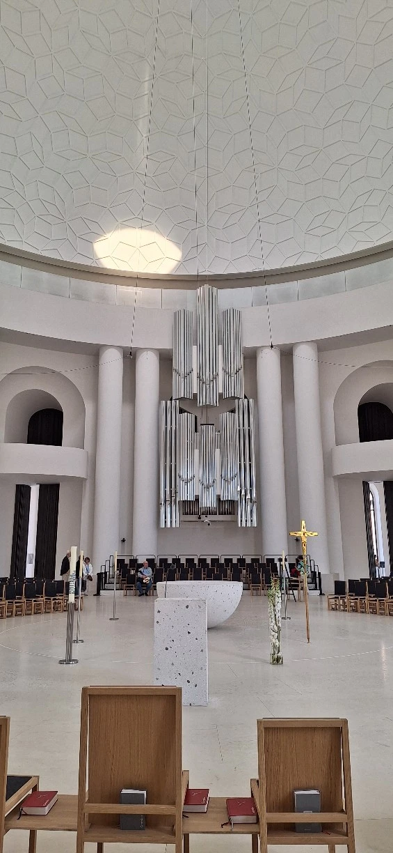 가던 길을 멈추고 무거운 청동 문을 밀고 들어가니 극한의 미니멀리즘을 구현한 듯한 공간이 펼쳐졌다. 고대 로마의 판테온을 닮은 건물 외부와는 달리 안쪽은 마치 미래 도시의 회관에 들어오기라도 한 듯한 기분이었다. 잠시 후 벽에 설치된 파이프오르간과 중앙의 십자가를 보고서야 이곳이 교회라는 걸 알 수 있었다.